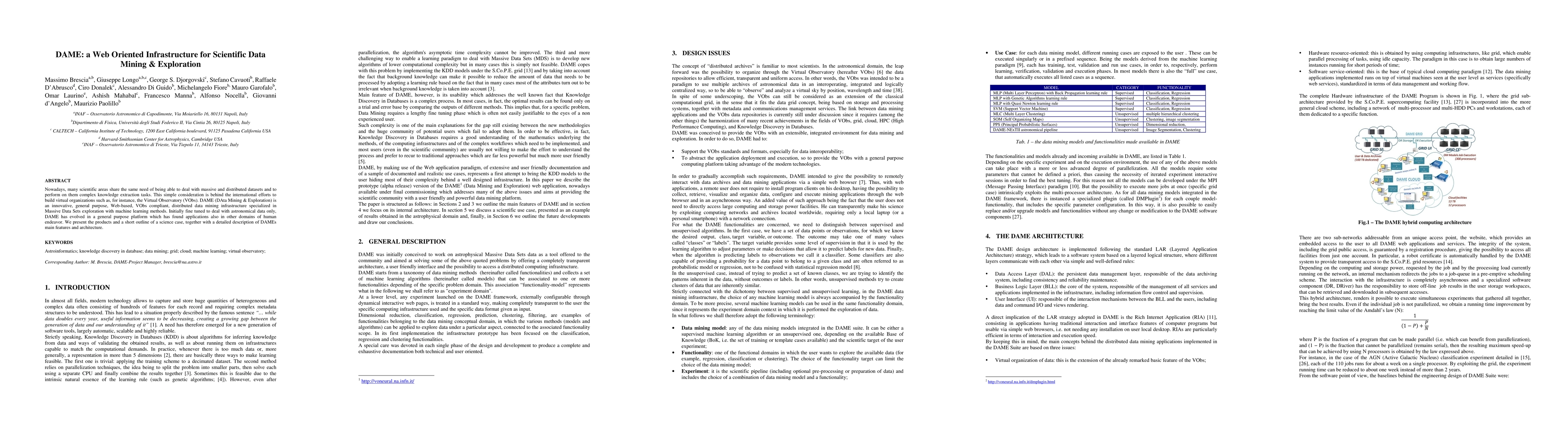 DAME is a web-based, distributed data mining infrastructure designed for exploring massive datasets using machine learning, initially tailored for astronomical data but now applicable across various fields. It presents key features and a science case in its beta release.