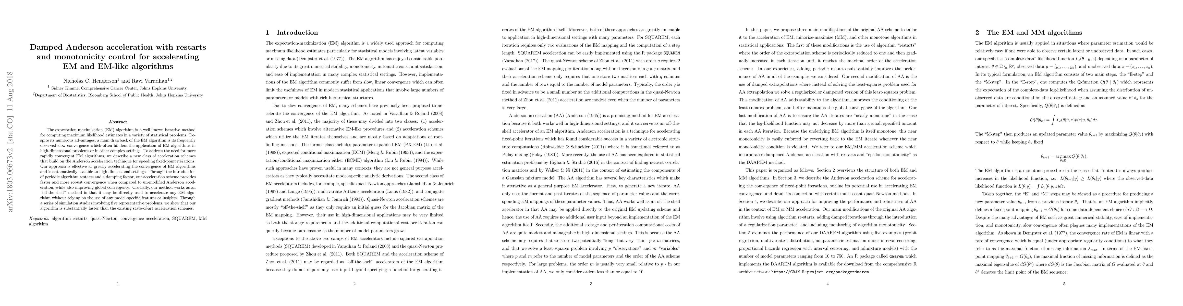 This paper introduces a new acceleration scheme based on damped Anderson acceleration with restarts and monotonicity control to speed up the convergence of EM algorithms. The proposed method significantly outperforms existing techniques in both speed and robustness, applicable universally across various EM algorithms without requiring model-specific features.