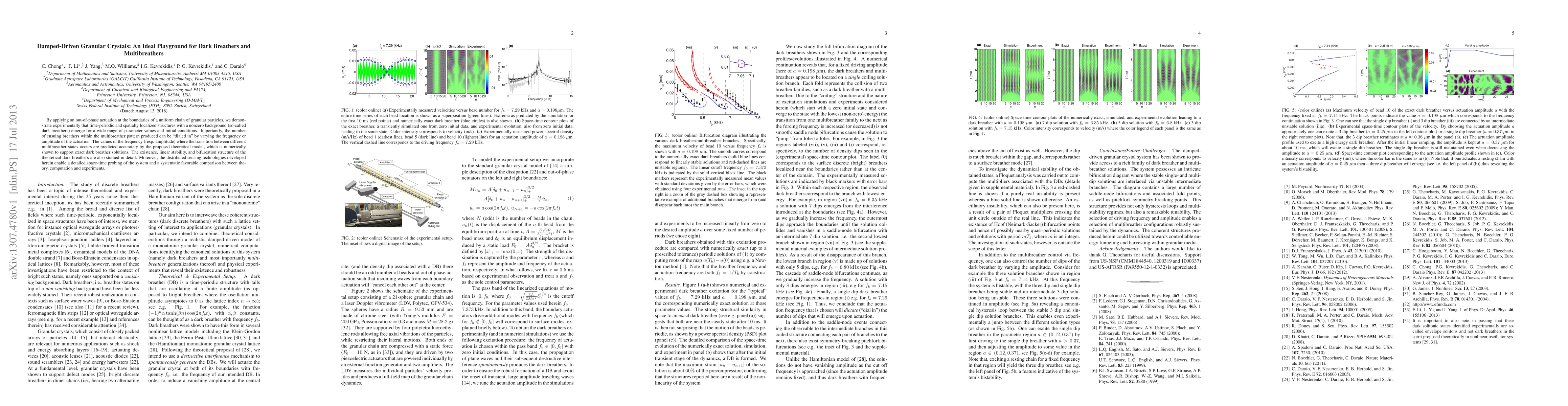 By applying an out-of-phase actuation at the boundaries of a uniform chain of granular particles, we demonstrate experimentally that time-periodic and spatially localized structures with a nonzero background (so-called dark breathers) emerge for a wide range of parameter values and initial conditions. Importantly, the number of ensuing breathers within the multibreather pattern produced can be "dialed in" by varying the frequency or amplitude of the actuation. The values of the frequency (resp. amplitude) where the transition between different multibreather states occurs are predicted accurately by the proposed theoretical model, which is numerically shown to support exact dark breather solutions. The existence, linear stability, and bifurcation structure of the theoretical dark breathers are also studied in detail. Moreover, the distributed sensing technologies developed herein enable a detailed space-time probing of the system and a systematic favorable comparison between theory, computation and experiments.