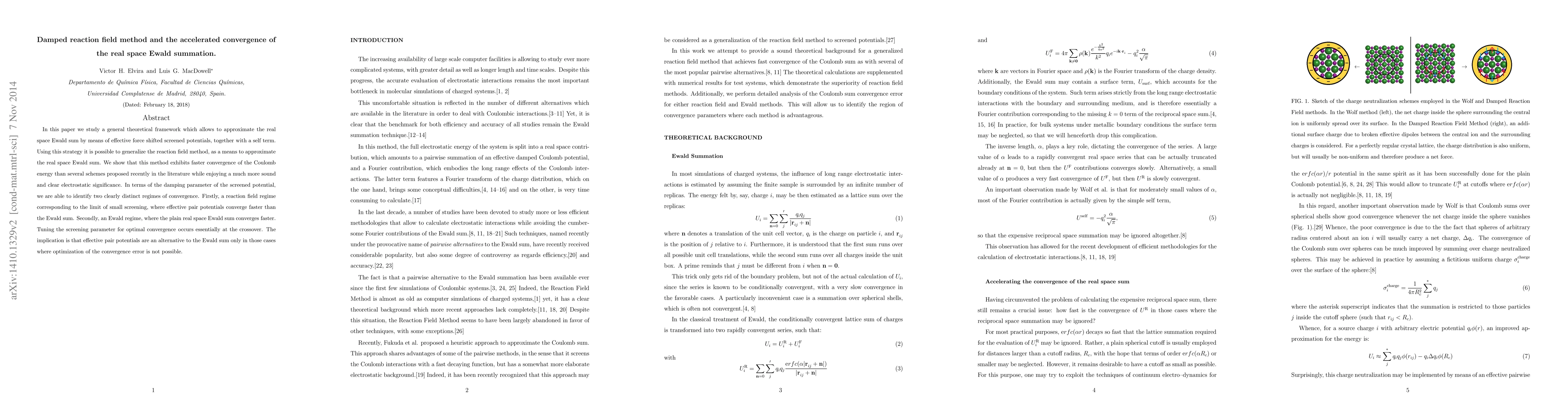 In this paper we study a general theoretical framework which allows to approximate the real space Ewald sum by means of effective force shifted screened potentials, together with a self term. Using this strategy it is possible to generalize the reaction field method, as a means to approximate the real space Ewald sum. We show that this method exhibits faster convergence of the Coulomb energy than several schemes proposed recently in the literature while enjoying a much more sound and clear electrostatic significance. In terms of the damping parameter of the screened potential, we are able to identify two clearly distinct regimes of convergence. Firstly, a reaction field regime corresponding to the limit of small screening, where effective pair potentials converge faster than the Ewald sum. Secondly, an Ewald regime, where the plain real space Ewald sum converges faster. Tuning the screening parameter for optimal convergence occurs essentially at the crossover. The implication is that effective pair potentials are an alternative to the Ewald sum only in those cases where optimization of the convergence error is not possible.