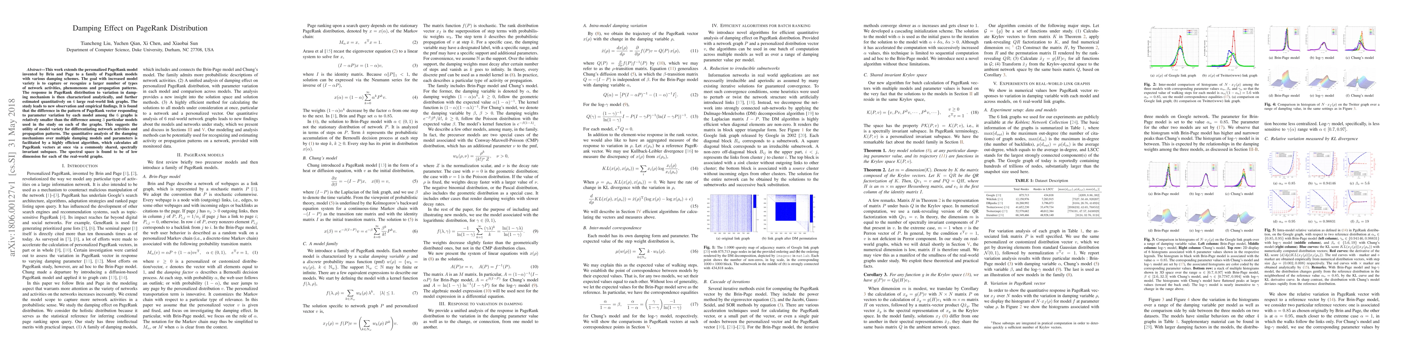 This work extends the personalized PageRank model invented by Brin and Page to a family of PageRank models with various damping schemes. The goal with increased model variety is to capture or recognize a larger number of types of network activities, phenomena and propagation patterns. The response in PageRank distribution to variation in damping mechanism is then characterized analytically, and further estimated quantitatively on 6 large real-world link graphs. The study leads to new observation and empirical findings. It is found that the difference in the pattern of PageRank vector responding to parameter variation by each model among the 6 graphs is relatively smaller than the difference among 3 particular models used in the study on each of the graphs. This suggests the utility of model variety for differentiating network activities and propagation patterns. The quantitative analysis of the damping mechanisms over multiple damping models and parameters is facilitated by a highly efficient algorithm, which calculates all PageRank vectors at once via a commonly shared, spectrally invariant subspace. The spectral space is found to be of low dimension for each of the real-world graphs.