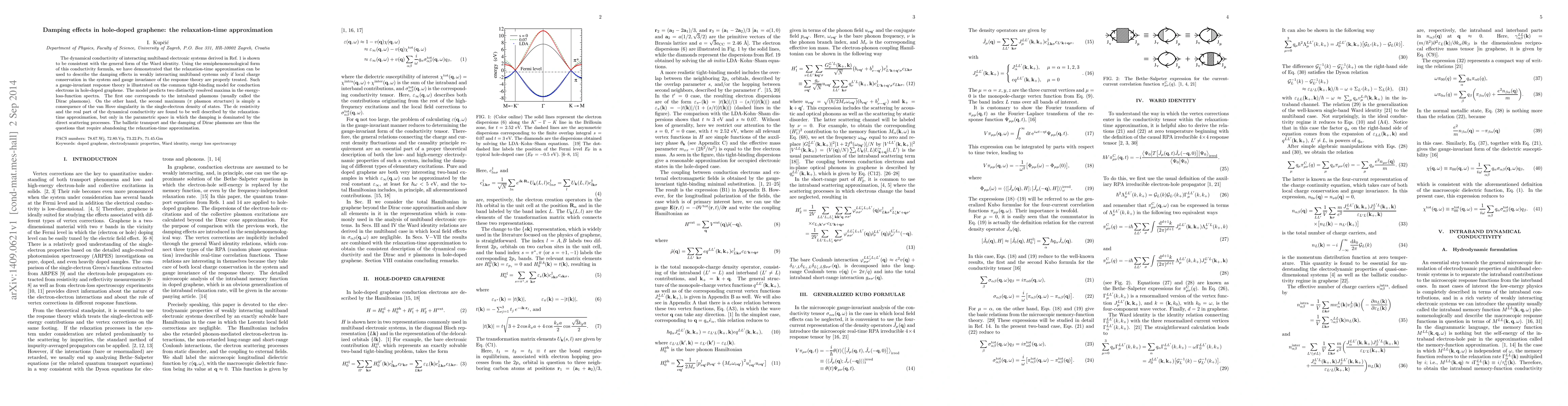 This research shows that the relaxation-time approximation can describe damping in weakly interacting multiband systems, like hole-doped graphene, if local charge conservation and gauge invariance are considered. The model reveals two energy-loss maxima, one from intraband plasmons and another from the van Hove singularity, while it fails to account for ballistic transport and Dirac plasmon damping.