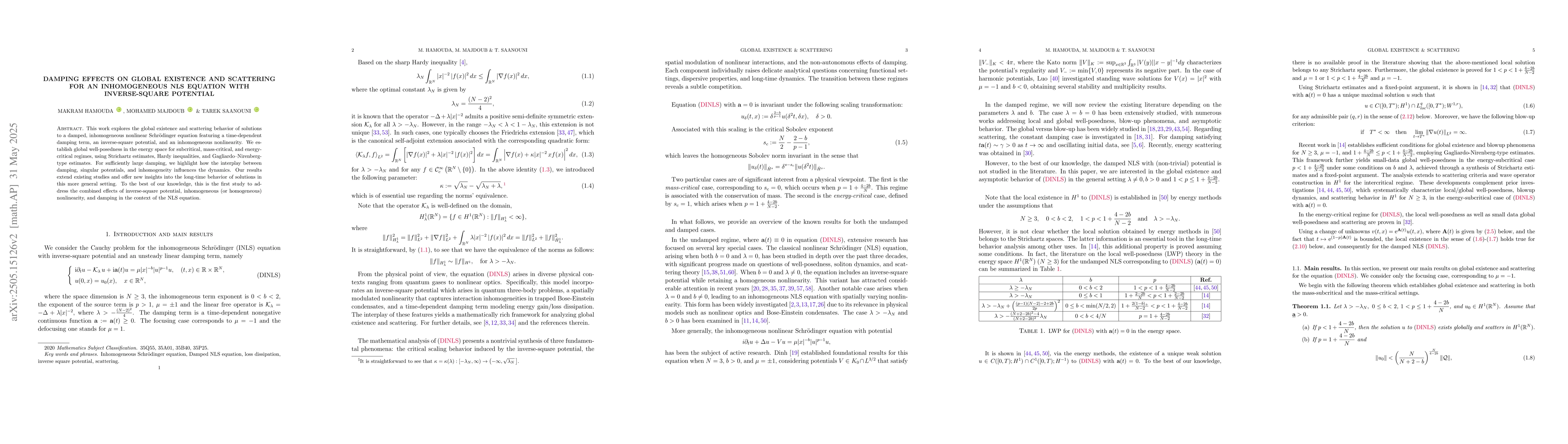 Development of novel analytical techniques to handle the interplay between damping, inverse-square potential, and inhomogeneous nonlinearity in the nonlinear Schrödinger equation.