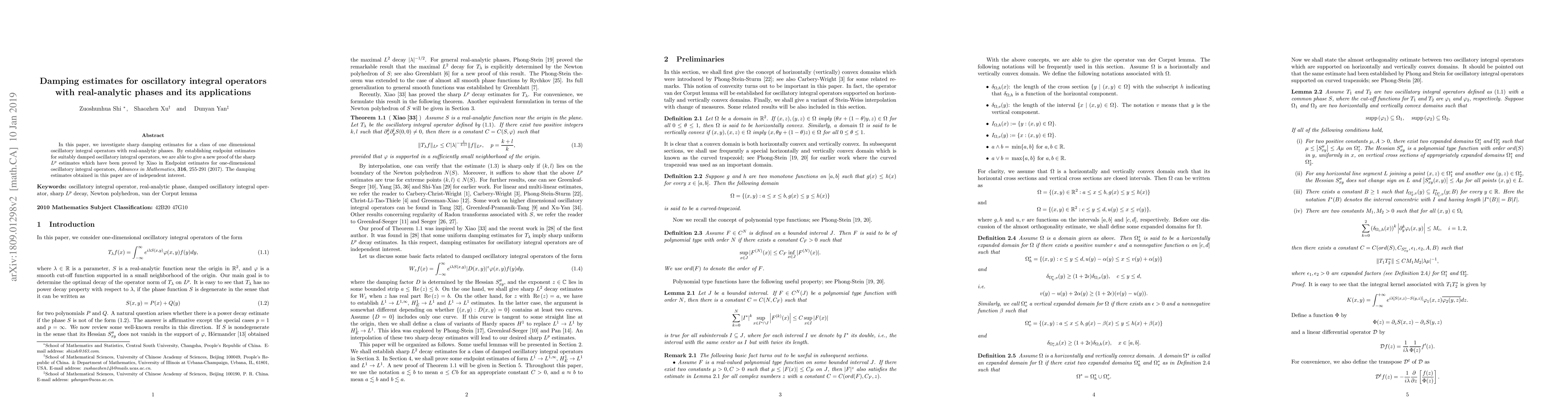 This paper establishes sharp damping estimates for one-dimensional oscillatory integral operators with real-analytic phases, providing a new proof for the sharp $L^p$ estimates previously shown by Xiao. The obtained damping estimates are significant on their own.
