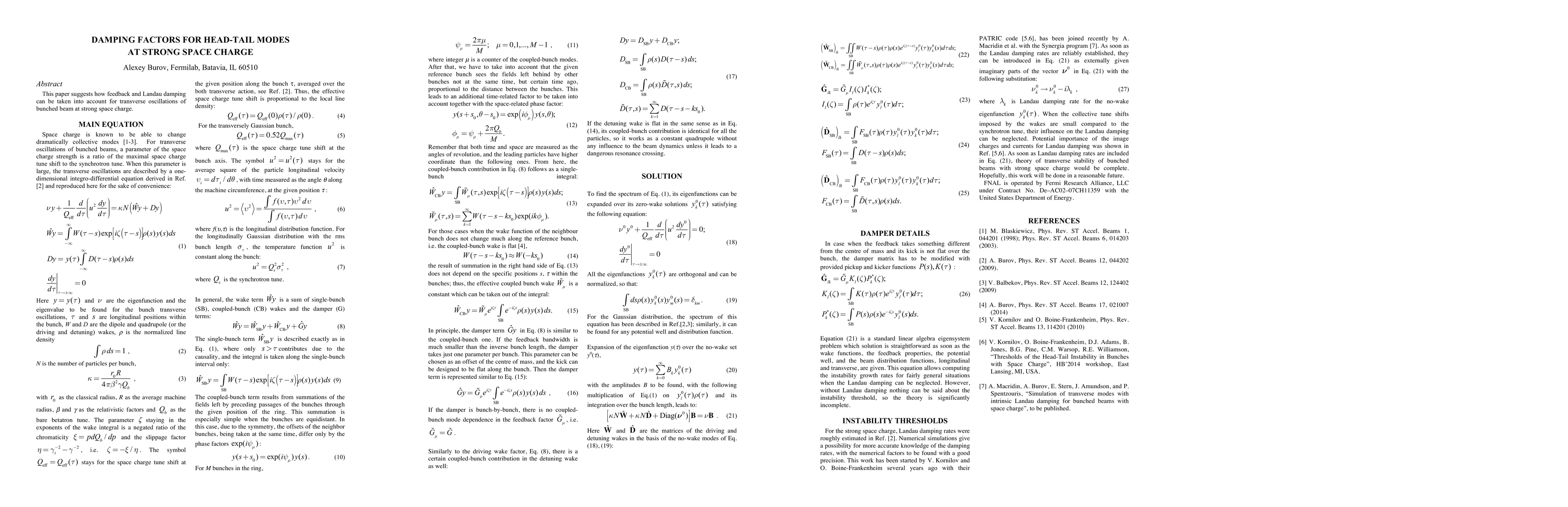 This work builds upon previous research by the authors and others, offering a more comprehensive framework for understanding and addressing beam instabilities in strong space charge environments, with a focus on the integration of feedback and Landau damping effects.