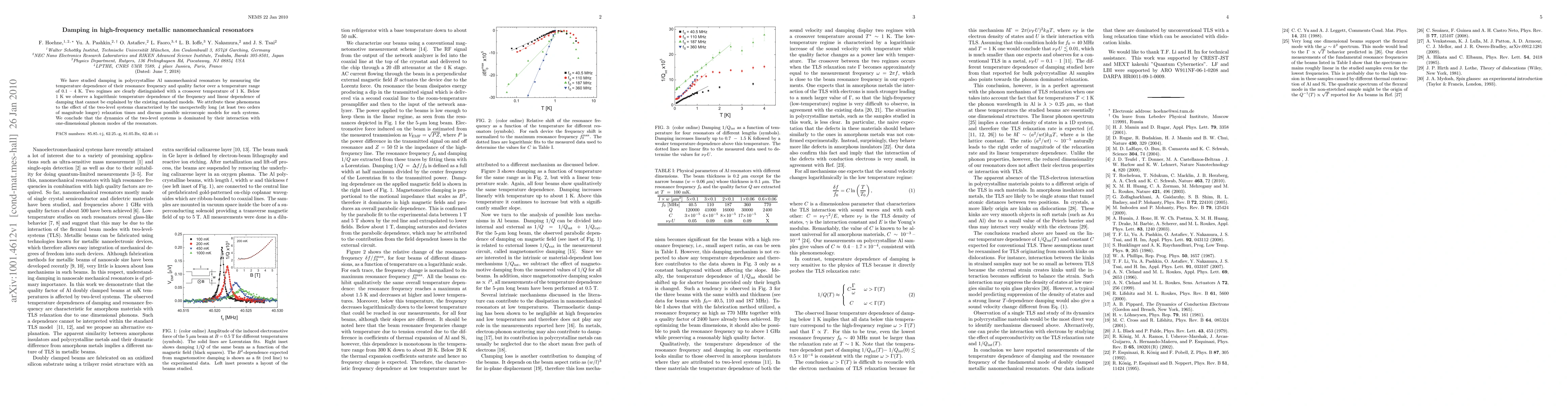 This study investigates damping in polycrystalline aluminum nanomechanical resonators, revealing two distinct temperature regimes with a crossover at 1 K. Below 1 K, unusual logarithmic frequency dependence and linear damping are observed, attributed to the influence of two-level systems with long relaxation times, suggesting interaction with one-dimensional phonon modes.