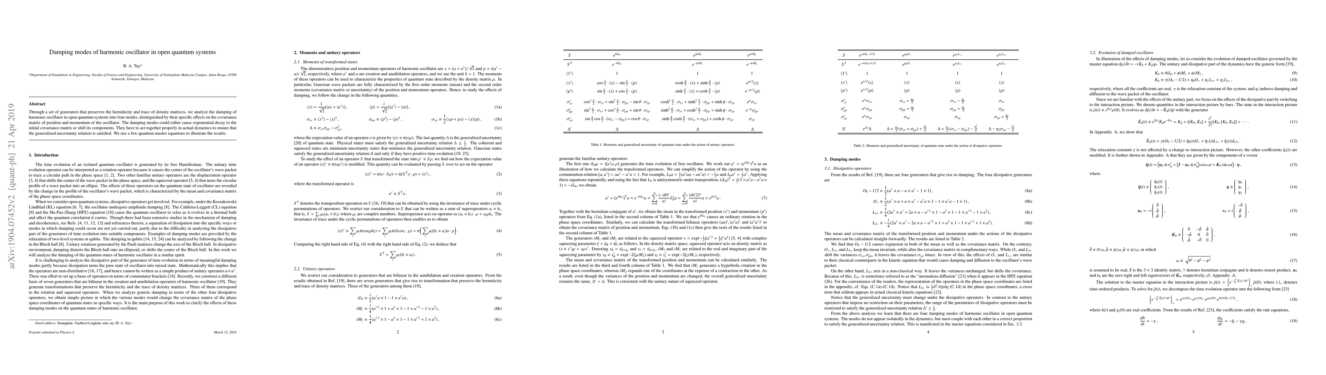 This paper analyzes the damping of a harmonic oscillator in open quantum systems into four modes that can cause exponential decay or shift its components, while maintaining the generalized uncertainty relation.