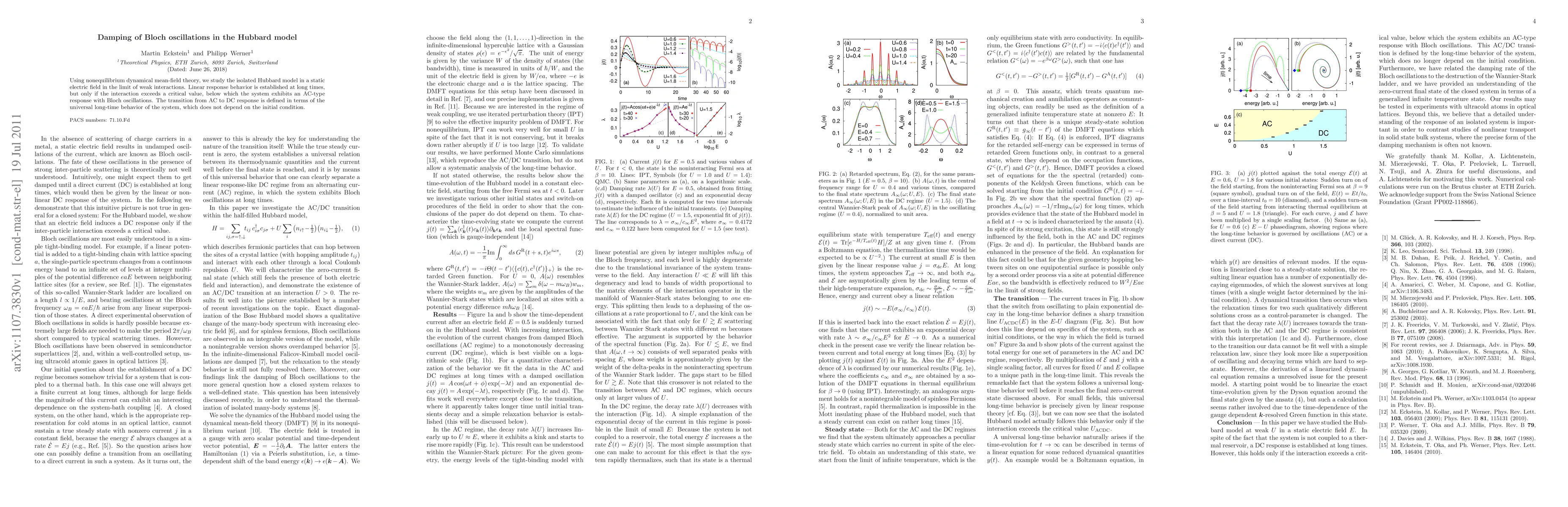 This study uses nonequilibrium dynamical mean-field theory to analyze the Hubbard model in a static electric field with weak interactions. It finds a critical interaction value where the system transitions from AC-type response with Bloch oscillations to DC response, independent of initial conditions.
