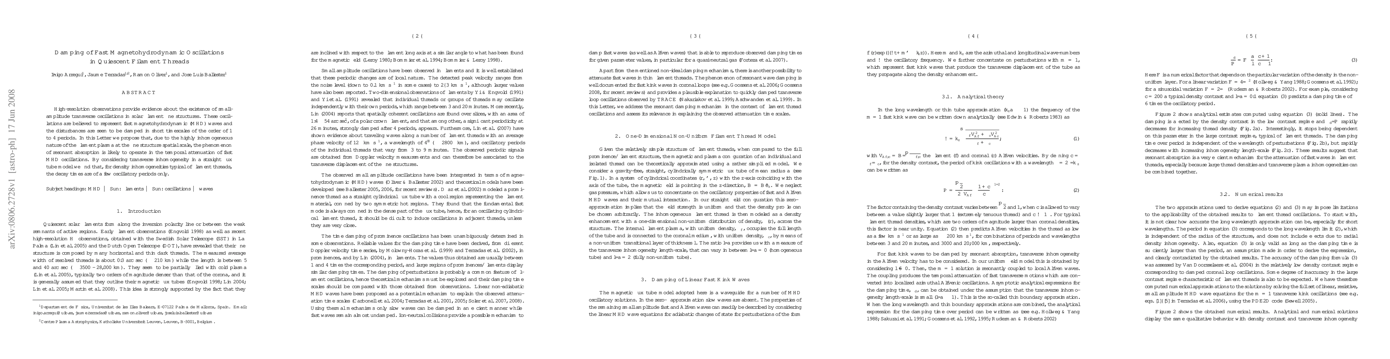 High-resolution solar observations reveal fast magnetohydrodynamic (MHD) oscillations in filament threads, dampened within 1-4 periods. The study proposes resonant absorption due to plasma inhomogeneity causes this rapid damping.