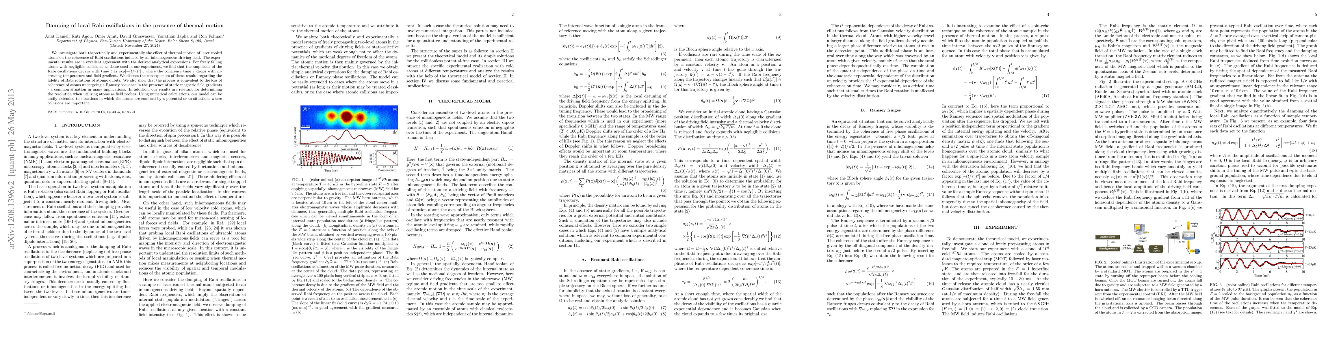 This paper investigates the damping of Rabi oscillations in laser-cooled atoms due to thermal motion, finding that coherence decays as $\exp[-(t/\tau)^4]$ with temperature and field gradient affecting the coherence time $\tau$. The results have implications for the fidelity of atomic qubit operations and the resolution of atomic field probes.