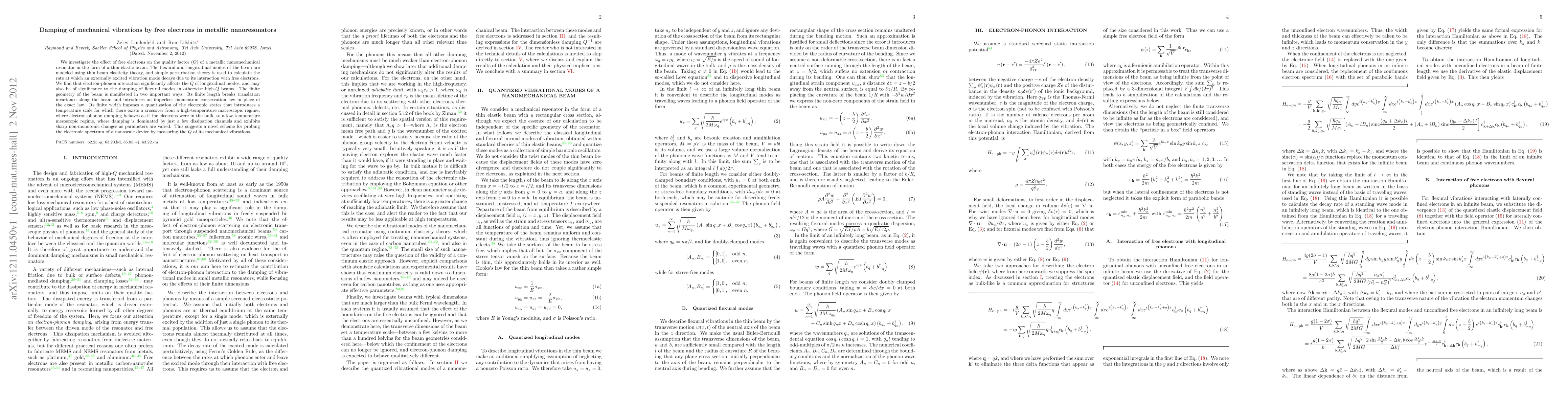 This study explores how free electrons influence the quality factor (Q) of metallic nanoresonators, finding that electron-phonon interactions significantly dampen longitudinal modes and may affect flexural modes. The finite geometry of the beam introduces unique damping behaviors transitioning from macroscopic to mesoscopic regimes.