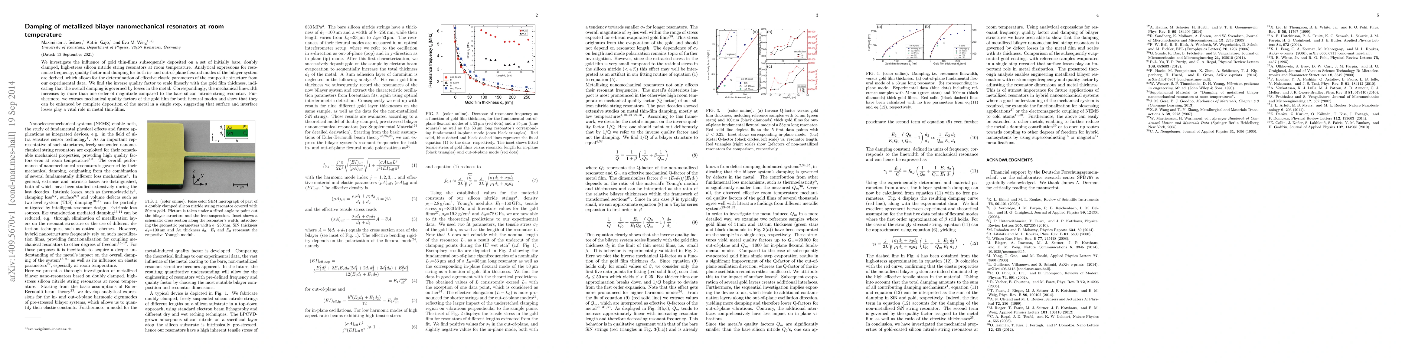 We investigate the influence of gold thin-films subsequently deposited on a set of initially bare, doubly clamped, high-stress silicon nitride string resonators at room temperature. Analytical expressions for resonance frequency, quality factor and damping for both in- and out-of-plane flexural modes of the bilayer system are derived, which allows for the determination of effective elastic parameters of the composite structure from our experimental data. We find the inverse quality factor to scale linearly with the gold film thickness, indicating that the overall damping is governed by losses in the metal. Correspondingly, the mechanical linewidth increases by more than one order of magnitude compared to the bare silicon nitride string resonator. Furthermore, we extract mechanical quality factors of the gold film for both flexural modes and show that they can be enhanced by complete deposition of the metal in a single step, suggesting that surface and interface losses play a vital role in metal thin-films.