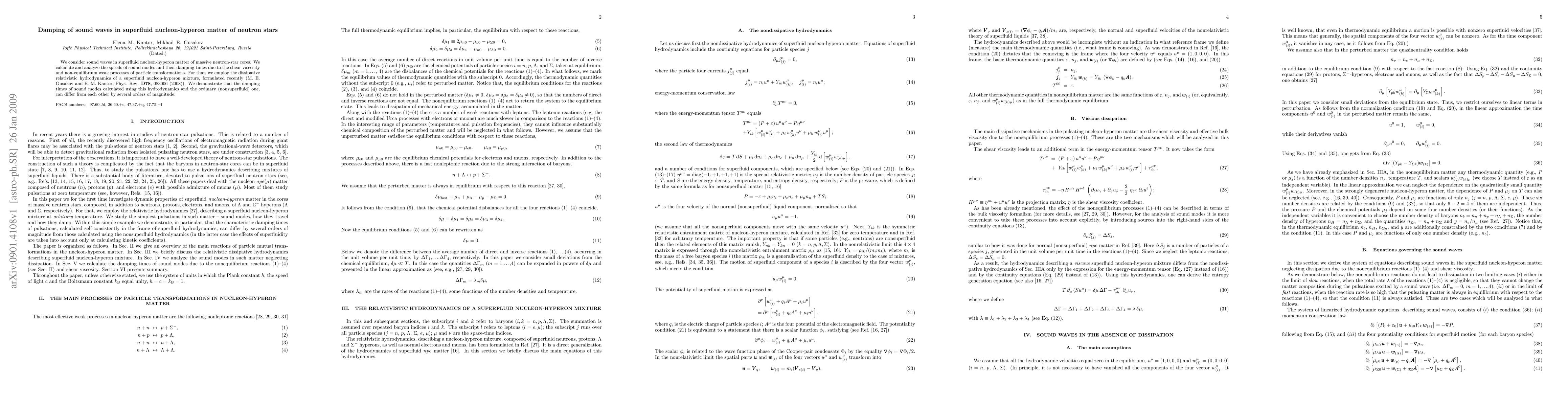 This paper investigates sound wave propagation in superfluid nucleon-hyperon matter within neutron stars, calculating sound speeds and damping times influenced by shear viscosity and non-equilibrium weak interactions. The study reveals significant differences in damping times between superfluid and nonsuperfluid hydrodynamic models.