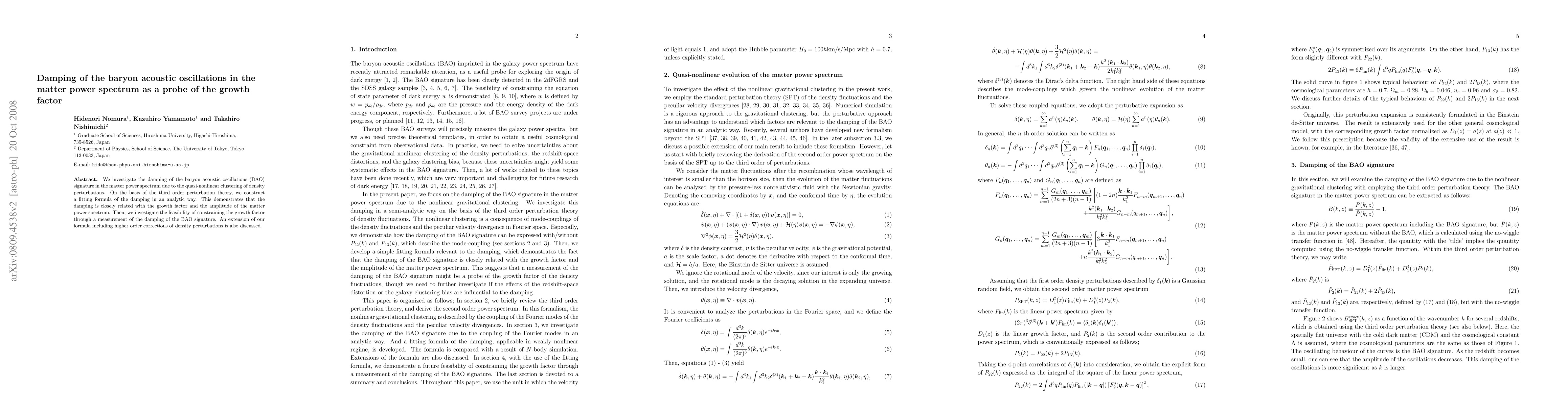 We investigate the damping of the baryon acoustic oscillations (BAO) signature in the matter power spectrum due to the quasi-nonlinear clustering of density perturbations. On the basis of the third order perturbation theory, we construct a fitting formula of the damping in an analytic way. This demonstrates that the damping is closely related with the growth factor and the amplitude of the matter power spectrum. Then, we investigate the feasibility of constraining the growth factor through a measurement of the damping of the BAO signature. An extension of our formula including higher order corrections of density perturbations is also discussed.
