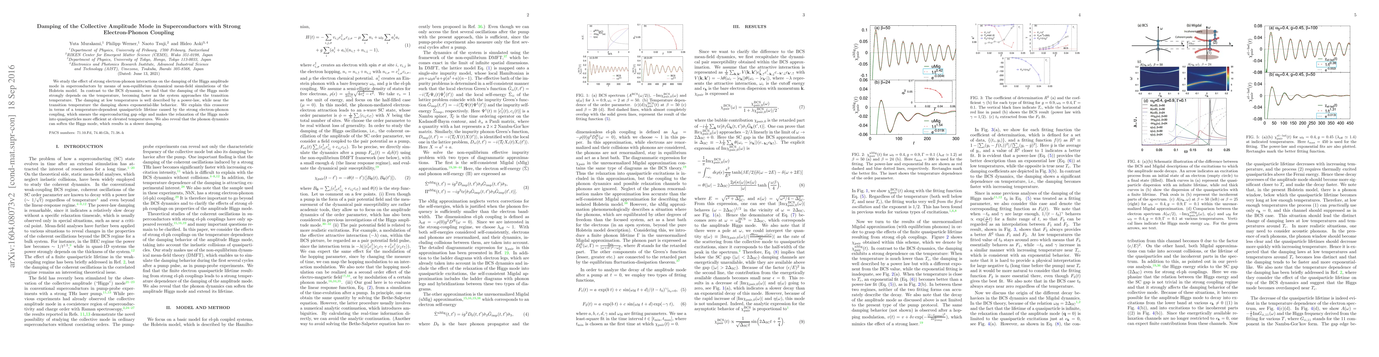 This paper investigates the damping of the Higgs amplitude mode in superconductors with strong electron-phonon coupling, revealing that damping varies significantly with temperature. Near the transition temperature, damping becomes exponentially faster due to a temperature-dependent quasiparticle lifetime, while at low temperatures it follows a power-law.