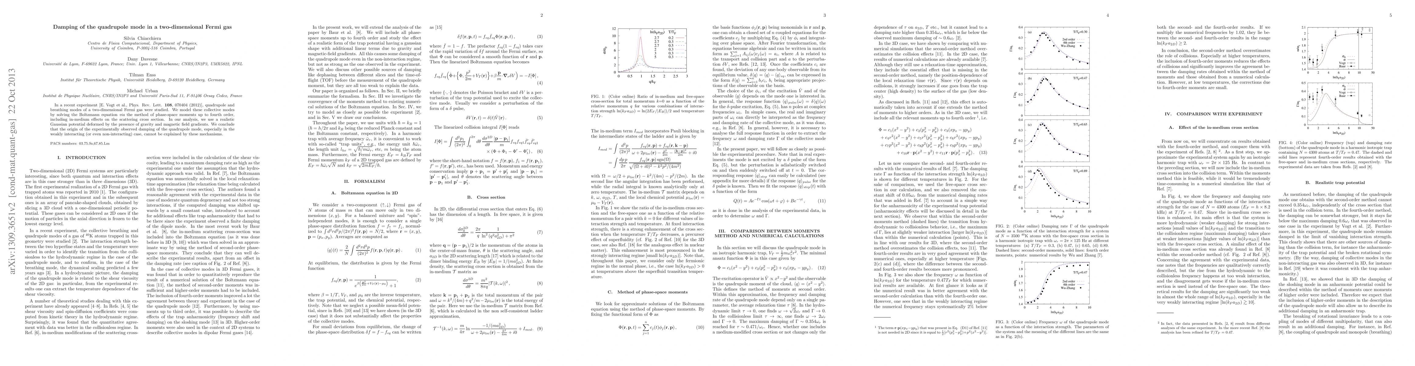 This research investigates the damping of the quadrupole mode in a two-dimensional Fermi gas, revealing that the observed damping cannot be explained by in-medium scattering effects, even in weakly interacting conditions. The study employs a Boltzmann equation approach with phase-space moments and considers realistic potential deformations due to gravity and magnetic fields.