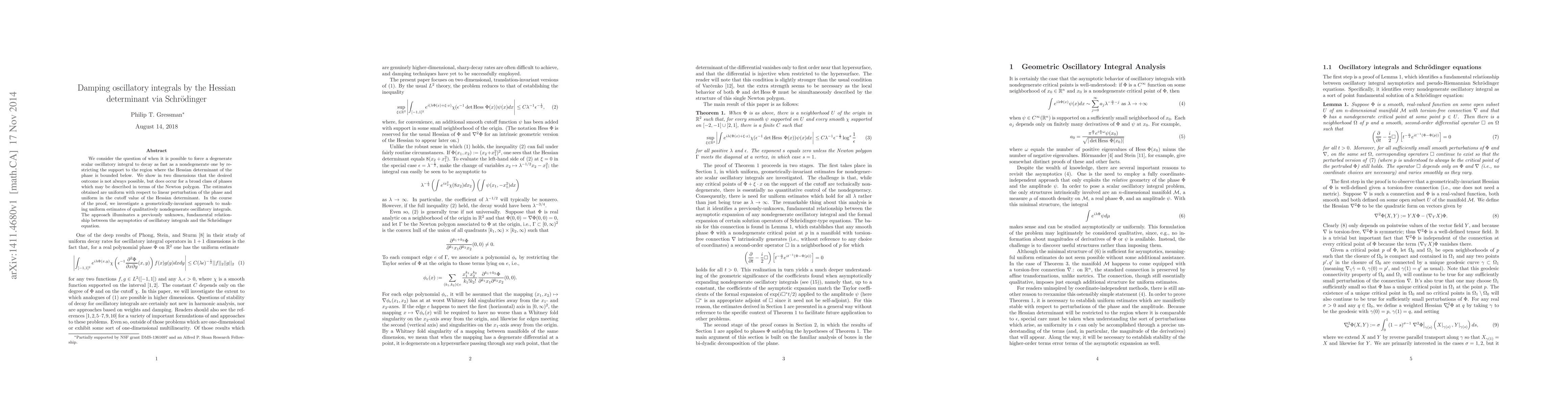 We consider the question of when it is possible to force a degenerate scalar oscillatory integral to decay as fast as a nondegenerate one by restricting the support to the region where the Hessian determinant of the phase is bounded below. We show in two dimensions that the desired outcome is not always possible, but does occur for a broad class of phases which may be described in terms of the Newton polygon. The estimates obtained are uniform with respect to linear perturbation of the phase and uniform in the cutoff value of the Hessian determinant. In the course of the proof, we investigate a geometrically-invariant approach to making uniform estimates of qualitatively nondegenerate oscillatory integrals. The approach illuminates a previously unknown, fundamental relationship between the asymptotics of oscillatory integrals and the Schr\"odinger equation.