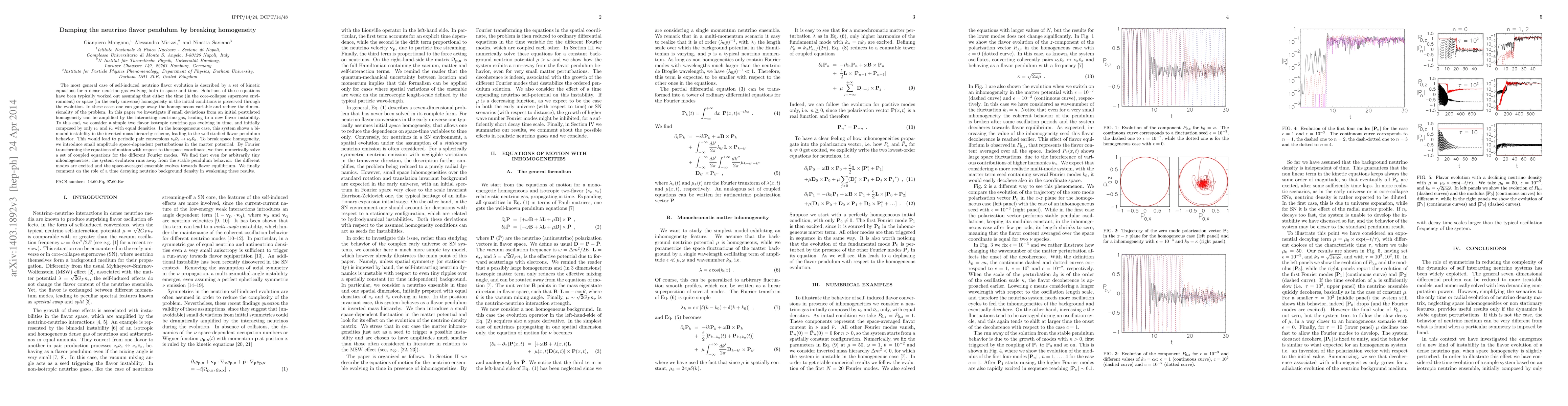 This paper investigates how small deviations from initial homogeneity in a dense neutrino gas can disrupt the typical flavor pendulum behavior, leading to new flavor instabilities. By introducing small space-dependent perturbations in the matter potential, the authors find that these inhomogeneities drive the system away from periodic flavor conversions, promoting flavor equilibrium instead.