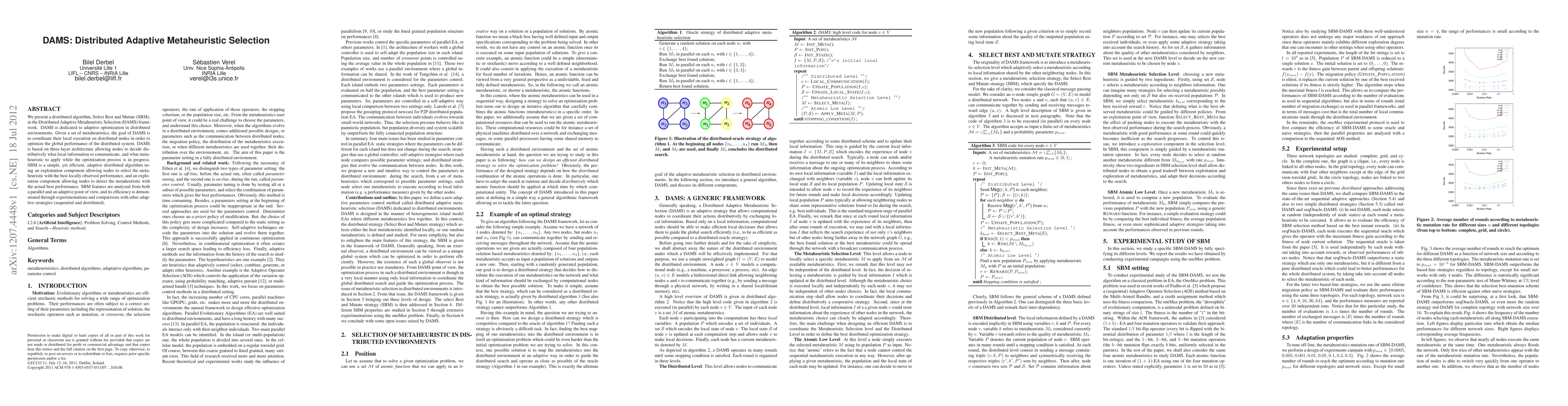 DAMS is a distributed adaptive metaheuristic selection algorithm designed to optimize global performance in distributed environments by coordinating the local execution of various metaheuristics. The algorithm employs a three-layer architecture for adaptive decision-making and is demonstrated through experiments to outperform other adaptive strategies.