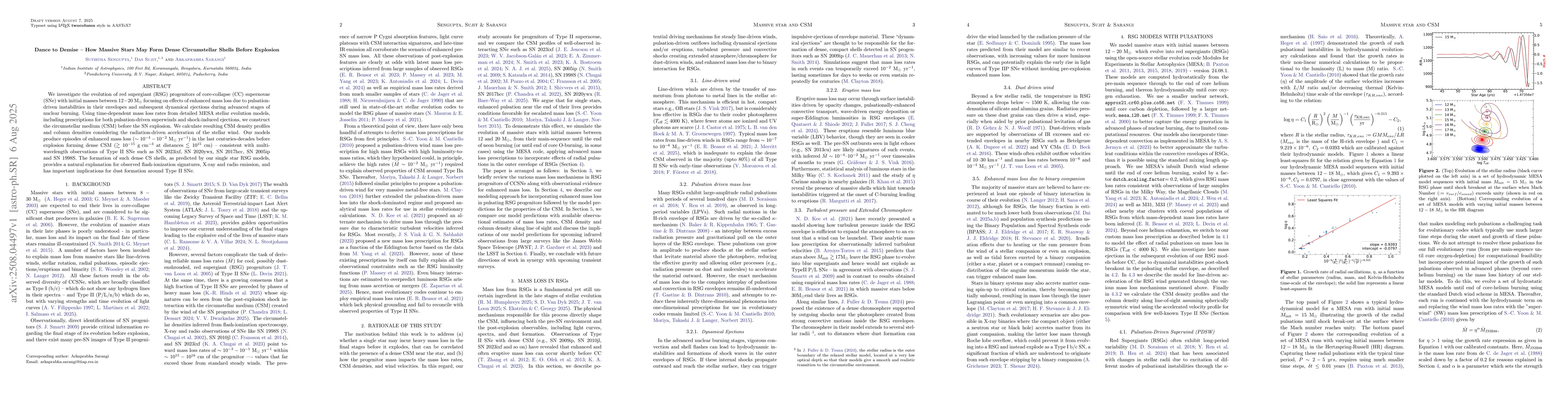 We investigate the evolution of red supergiant (RSG) progenitors of core-collapse (CC) supernovae (SNe) with initial masses between 12-20 Msun focusing on effects of enhanced mass loss due to pulsation-driven instabilities in their envelopes and subsequent dynamical ejections during advanced stages of nuclear burning. Using time-dependent mass loss rates from detailed MESA stellar evolution models, including prescriptions for both pulsation-driven superwinds and shock-induced ejections, we construct the circumstellar medium (CSM) before the SN explosion. We calculate resulting CSM density profiles and column densities considering the radiation-driven acceleration of the stellar wind. Our models produce episodes of enhanced mass loss ~10^-4-10^-2 Msun/yr in the last centuries-decades before explosion forming dense CSM (>~10^-15 g/cm^3 at distances <~10^15 cm) - consistent with multi-wavelength observations of Type II SNe such as SN 2023ixf, SN 2020ywx, SN 2017hcc, SN 2005ip and SN 1998S. The formation of such dense CS shells, as predicted by our single star RSG models, provides a natural explanation for observed flash-ionization signatures, X-ray and radio emission, and has important implications for dust formation around Type II SNe.