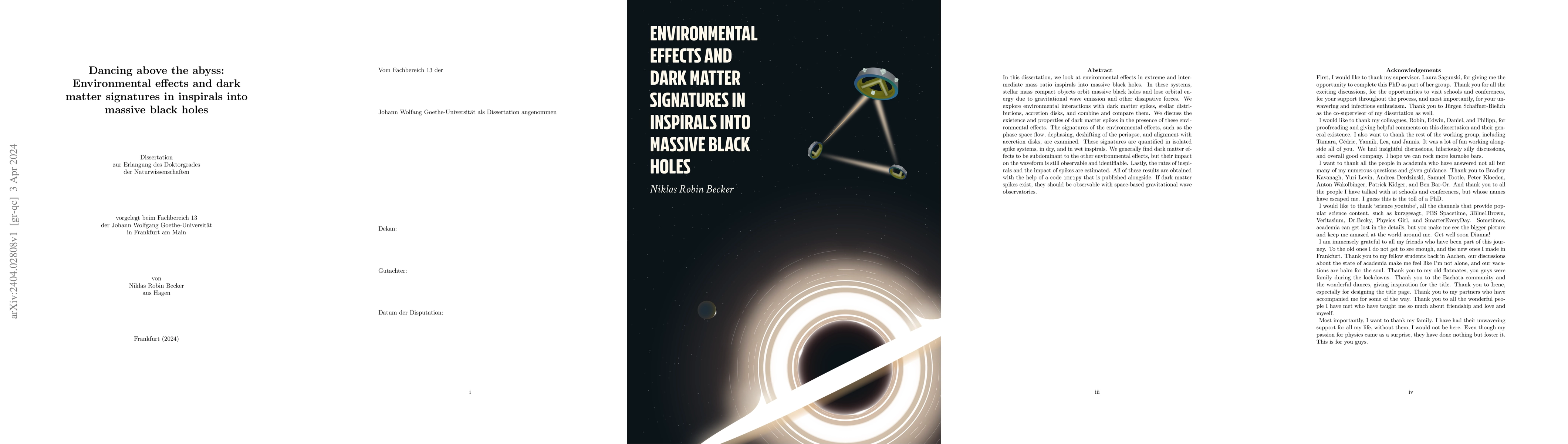 In this dissertation, we look at environmental effects in extreme and intermediate mass ratio inspirals into massive black holes. In these systems, stellar mass compact objects orbit massive black holes and lose orbital energy due to gravitational wave emission and other dissipative forces. We explore environmental interactions with dark matter spikes, stellar distributions, accretion disks, and combine and compare them. We discuss the existence and properties of dark matter spikes in the presence of these environmental effects. The signatures of the environmental effects, such as the phase space flow, dephasing, deshifting of the periapse, and alignment with accretion disks, are examined. These signatures are quantified in isolated spike systems, in dry, and in wet inspirals. We generally find dark matter effects to be subdominant to the other environmental effects, but their impact on the waveform is still observable and identifiable. Lastly, the rates of inspirals and the impact of spikes are estimated. All of these results are obtained with the help of a code imripy that is published alongside. If dark matter spikes exist, they should be observable with space-based gravitational wave observatories