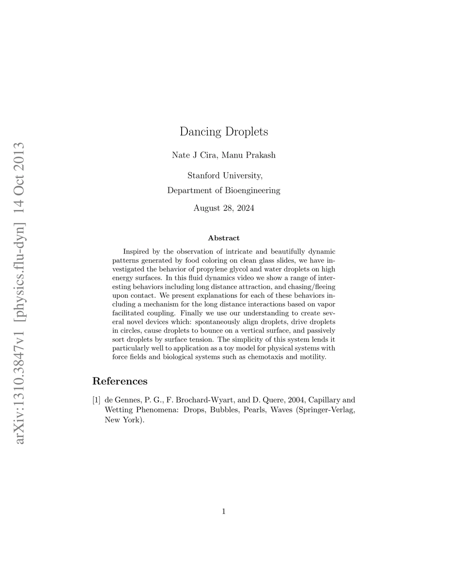 Inspired by the observation of intricate and beautifully dynamic patterns generated by food coloring on clean glass slides, we have investigated the behavior of propylene glycol and water droplets on high energy surfaces. In this fluid dynamics video we show a range of interesting behaviors including long distance attraction, and chasing/fleeing upon contact. We present explanations for each of these behaviors including a mechanism for the long distance interactions based on vapor facilitated coupling. Finally we use our understanding to create several novel devices which: spontaneously align droplets, drive droplets in circles, cause droplets to bounce on a vertical surface, and passively sort droplets by surface tension. The simplicity of this system lends it particularly well to application as a toy model for physical systems with force fields and biological systems such as chemotaxis and motility.