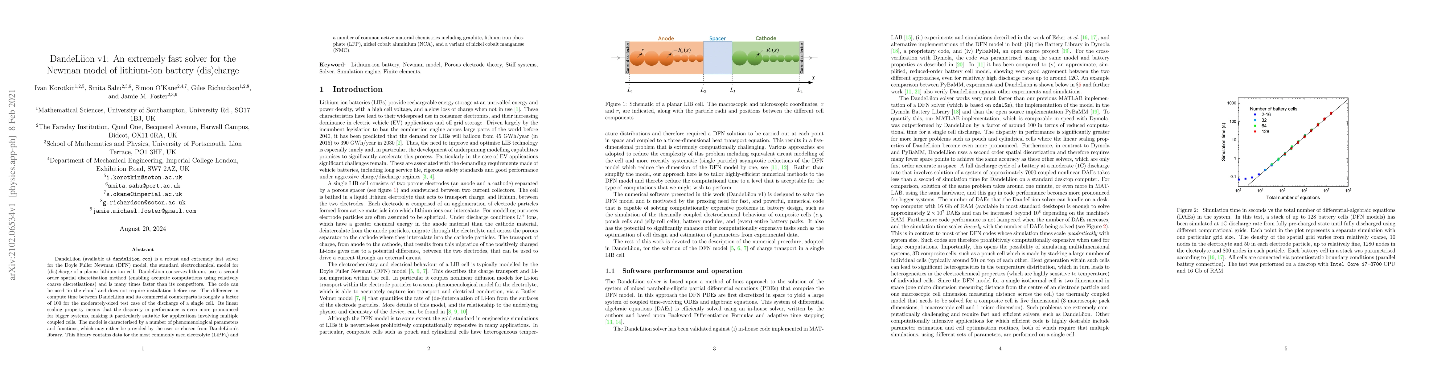 DandeLiion is a fast solver for the Doyle Fuller Newman model of lithium-ion battery discharge that outperforms commercial alternatives by a factor of 100, making it suitable for large-scale simulations.