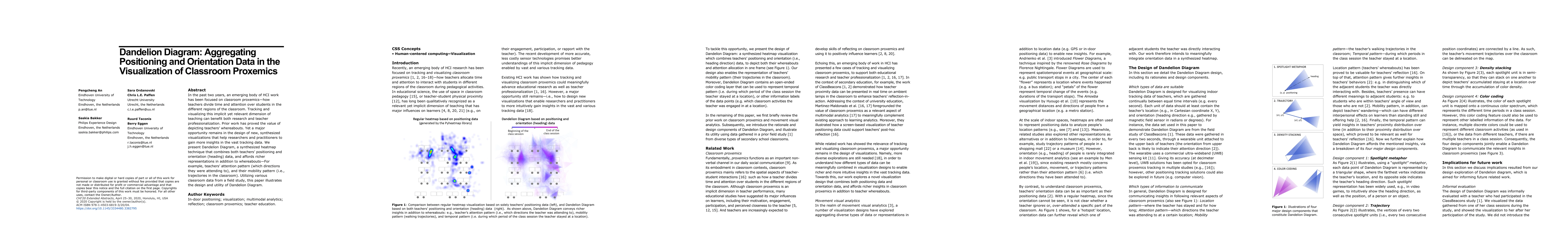 In the past two years, an emerging body of HCI work has been focused on classroom proxemics - how teachers divide time and attention over students in the different regions of the classroom. Tracking and visualizing this implicit yet relevant dimension of teaching can benefit both research and teacher professionalization. Prior work has proved the value of depicting teachers' whereabouts. Yet a major opportunity remains in the design of new, synthesized visualizations that help researchers and practitioners to gain more insights in the vast tracking data. We present Dandelion Diagram, a synthesized heatmap technique that combines both teachers' positioning and orientation (heading) data, and affords richer representations in addition to whereabouts - For example, teachers' attention pattern (which directions they were attending to), and their mobility pattern (i.e., trajectories in the classroom). Utilizing various classroom data from a field study, this paper illustrates the design and utility of Dandelion Diagram.