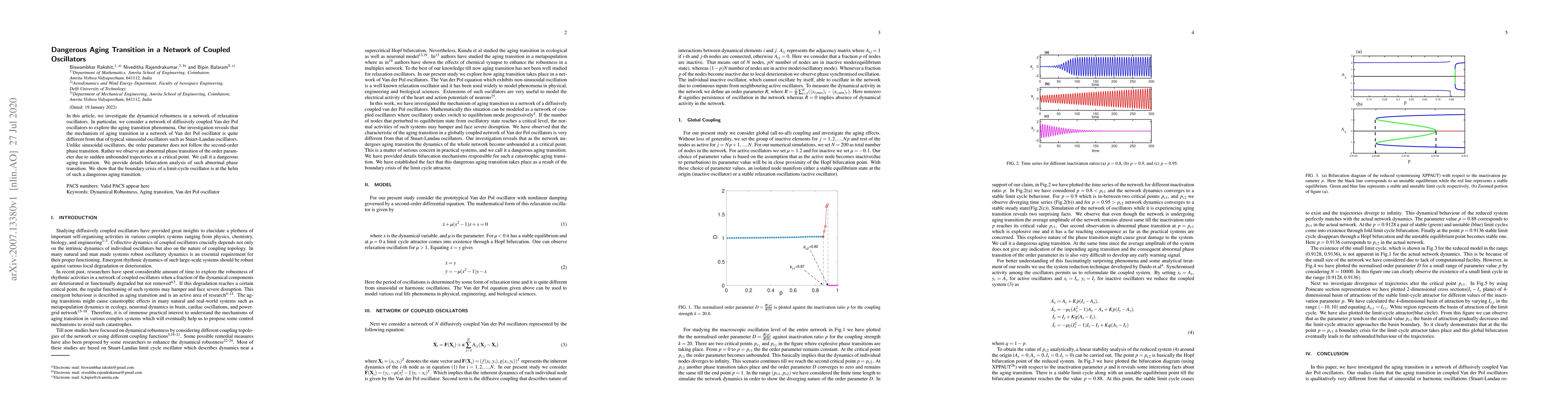 A network of Van der Pol oscillators exhibits an unusual aging transition where the order parameter undergoes a sudden, unbounded trajectory at a critical point, leading to a 'dangerous aging' phenomenon that differs from typical sinusoidal oscillator transitions.