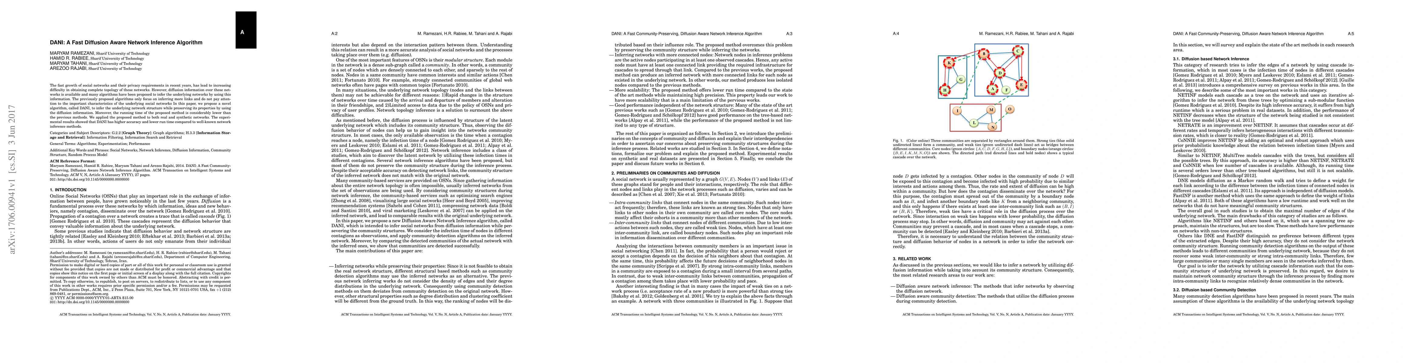 A new algorithm called DANI is proposed to infer social network structure using diffusion information, achieving higher accuracy and faster run times than existing methods.