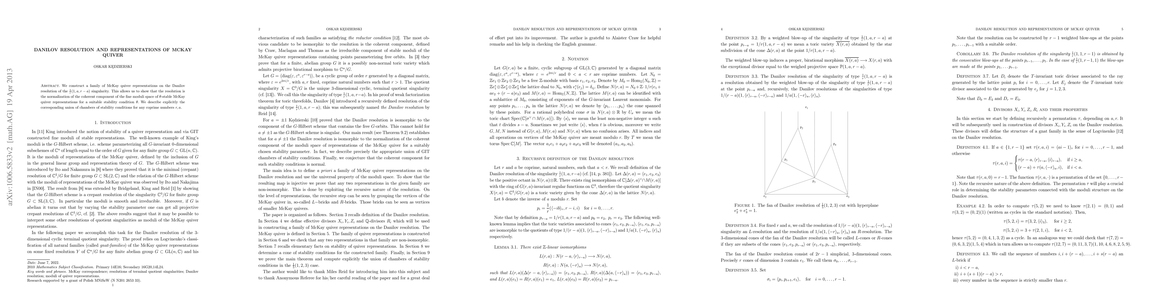 This paper constructs McKay quiver representations on the Danilov resolution of the 1/r(1,a,r - a) singularity, showing that the resolution is the normalization of the coherent component of the moduli space of stable representations under a suitable stability condition. The authors explicitly describe the stability conditions for any coprime r and a.