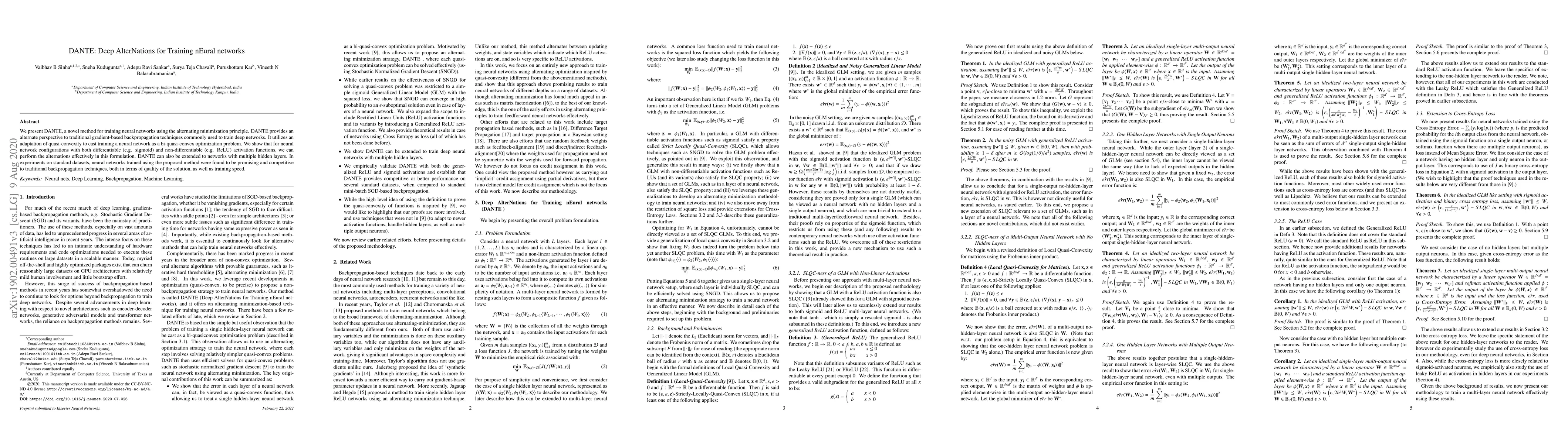 DANTE proposes a novel method for training neural networks using an alternating minimization principle, offering a promising alternative to traditional gradient-based backpropagation techniques.