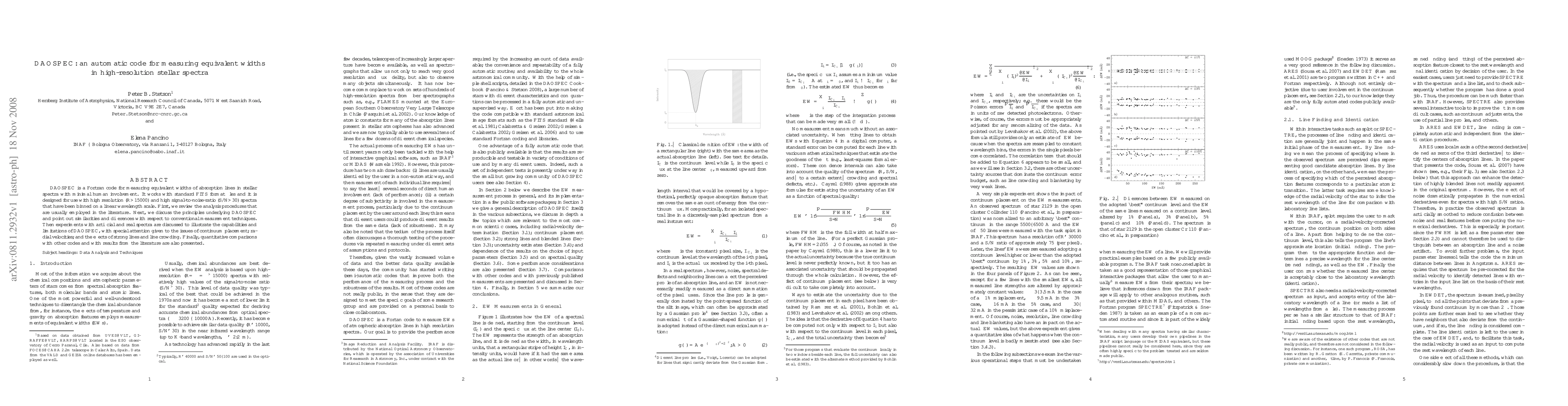 DAOSPEC is an automated Fortran code for measuring equivalent widths in high-resolution stellar spectra, minimizing human intervention. It compares favorably with conventional techniques and is tested on both artificial and real spectra to evaluate its performance in various scenarios.