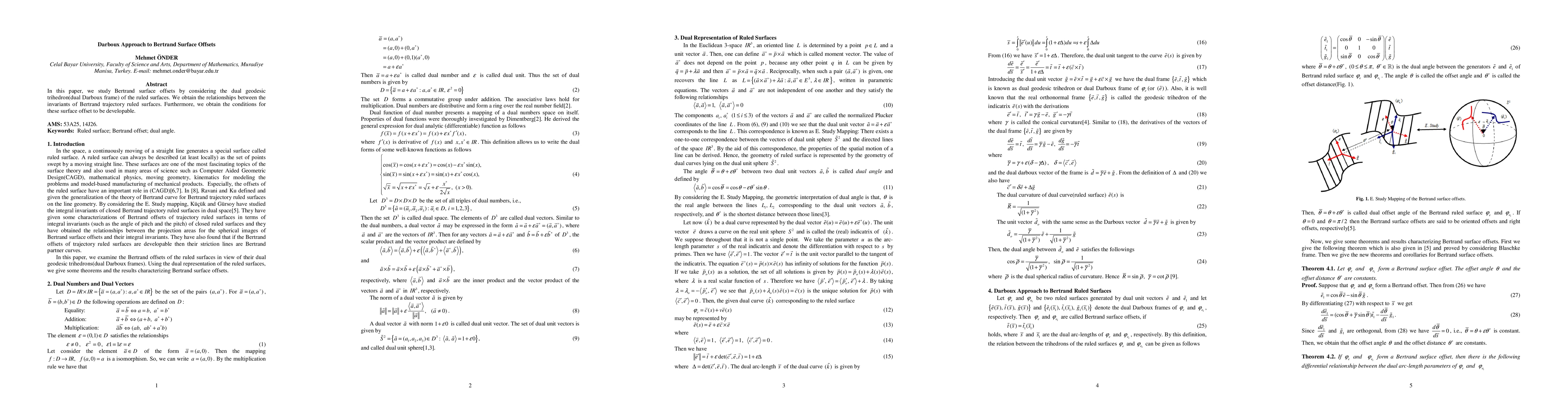 This paper uses a Darboux approach to study Bertrand surface offsets by analyzing the dual geodesic trihedron of ruled surfaces, revealing relationships between invariant properties and conditions for developability.