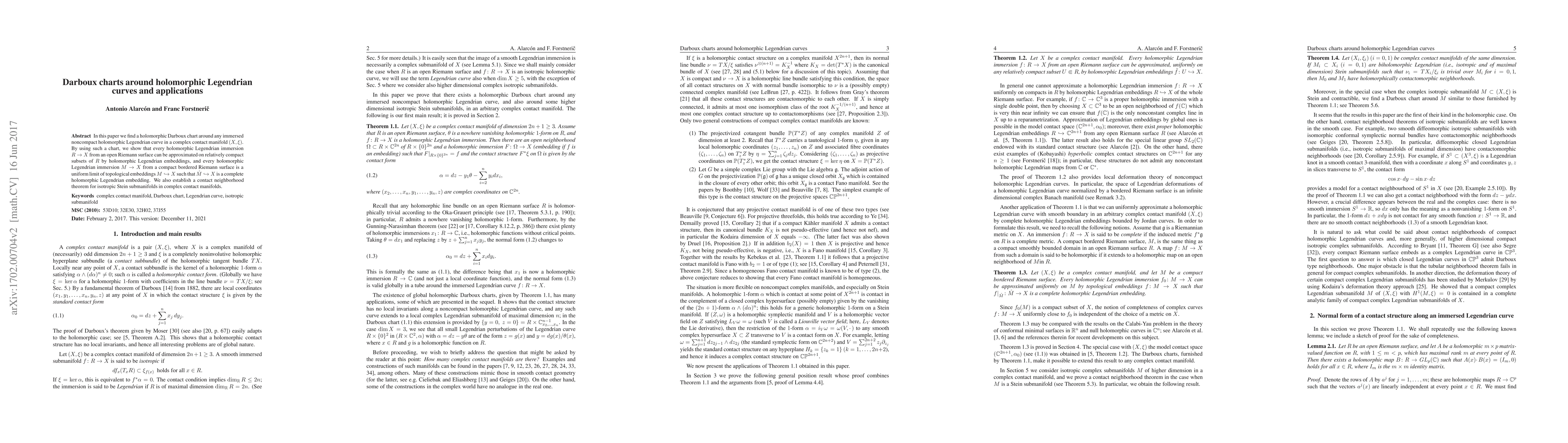This paper develops holomorphic Darboux charts for noncompact holomorphic Legendrian curves in complex contact manifolds, demonstrating the approximation of holomorphic Legendrian immersions by embeddings and establishing a contact neighborhood theorem for isotropic Stein submanifolds.