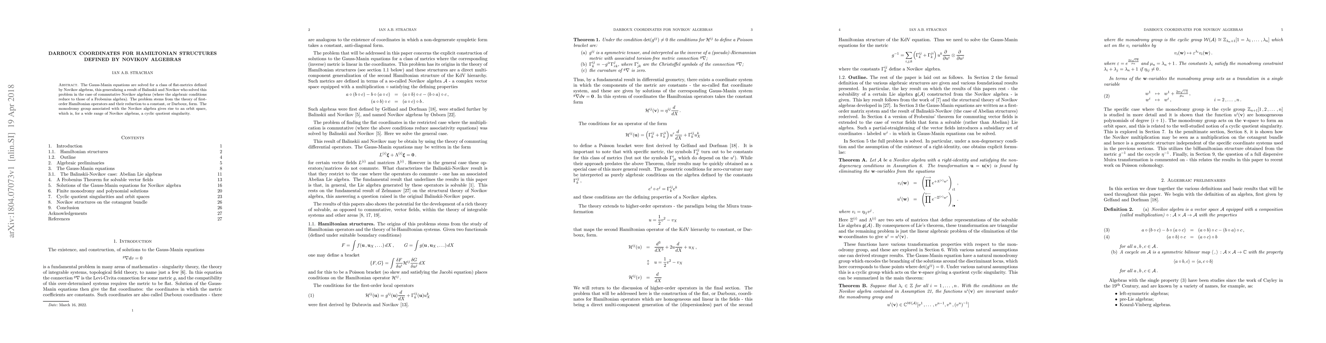 The Gauss-Manin equations are solved for a class of flat-metrics defined by Novikov algebras, this generalizing a result of Balinskii and Novikov who solved this problem in the case of commutative Novikov algebras (where the algebraic conditions reduce to those of a Frobenius algebra). The problem stems from the theory of first-order Hamiltonian operators and their reduction to a constant, or Darboux, form. The monodromy group associated with the Novikov algebra gives rise to an orbit space, which is, for a wide range of Novikov algebras, a cyclic quotient singularity.