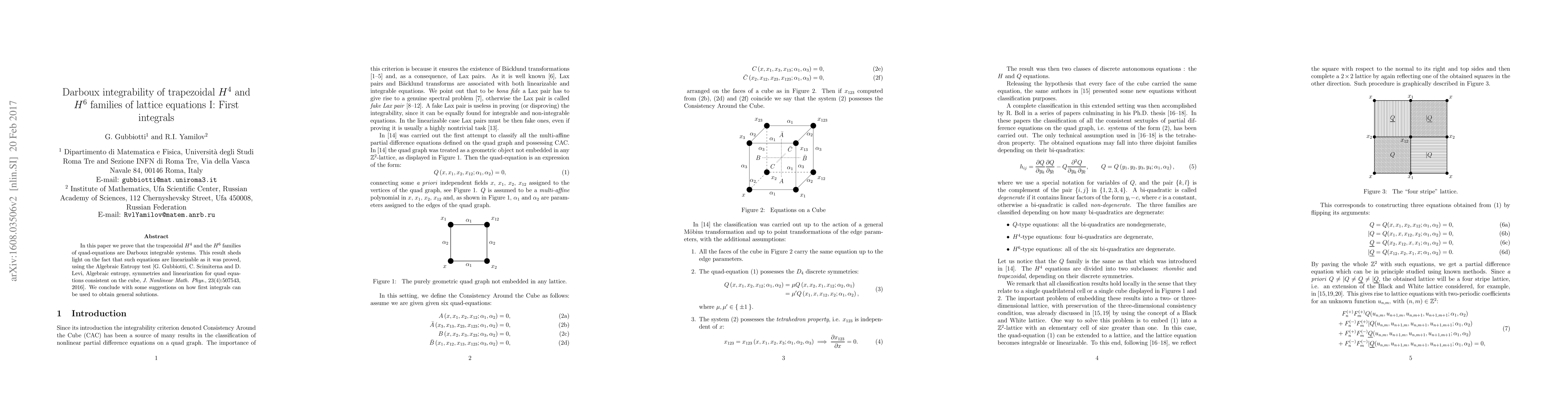 In this paper we prove that the trapezoidal $H^{4}$ and the $H^{6}$ families of quad-equations are Darboux integrable systems. This result sheds light on the fact that such equations are linearizable as it was proved using the Algebraic Entropy test [G. Gubbiotti, C. Scimiterna and D. Levi, Algebraic entropy, symmetries and linearization for quad equations consistent on the cube, \emph{J. Nonlinear Math. Phys.}, 23(4):507543, 2016]. We conclude with some suggestions on how first integrals can be used to obtain general solutions.