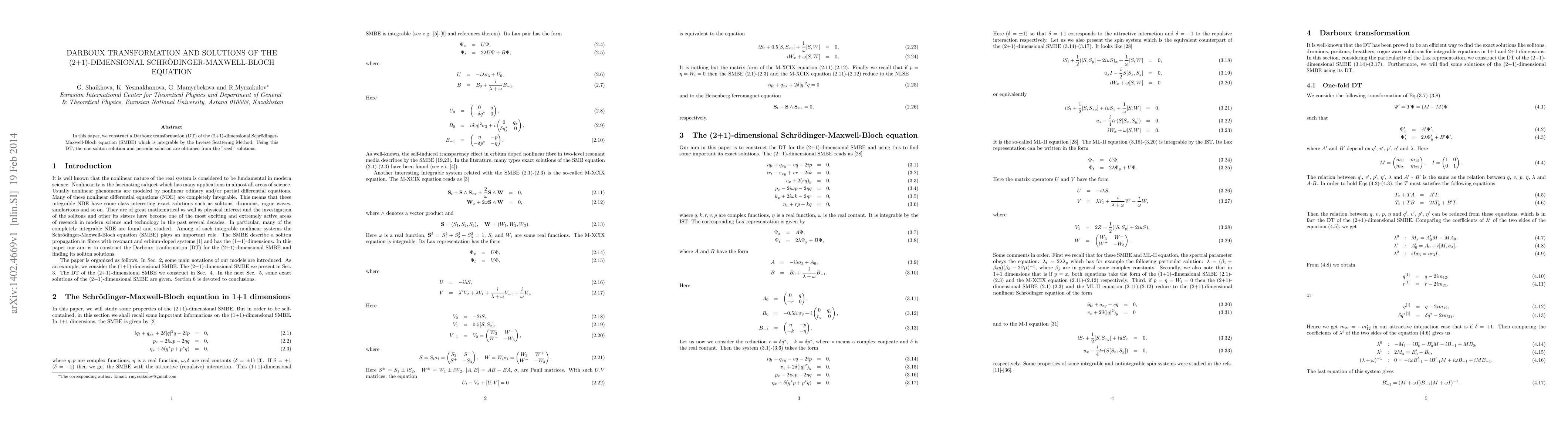 Researchers developed a Darboux transformation to solve the (2+1)-dimensional Schr"odinger-Maxwell-Bloch equation, resulting in integrable solutions including one-soliton and periodic solutions.