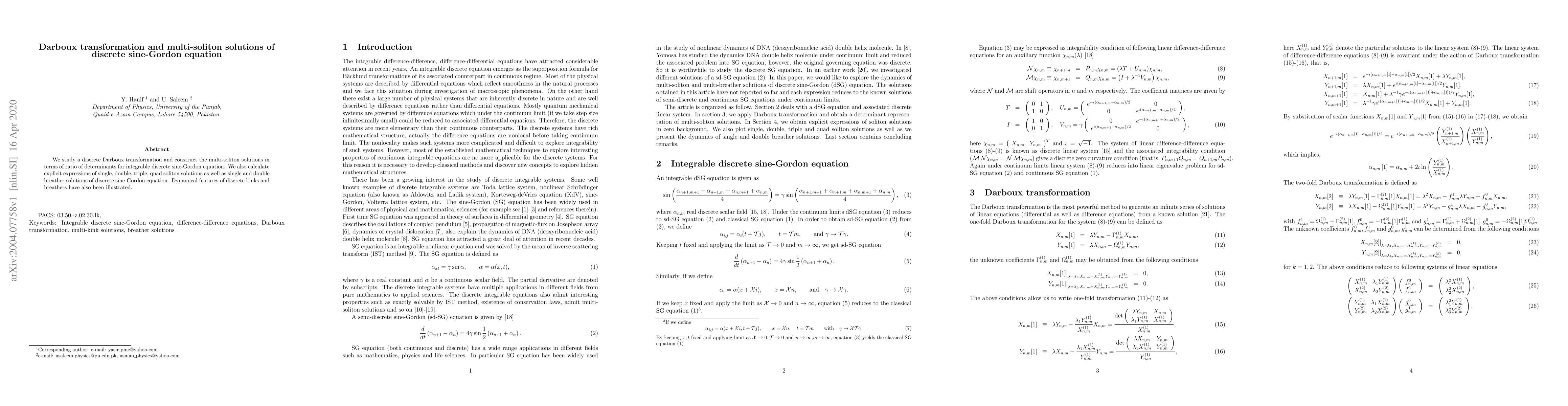 This paper explores a discrete Darboux transformation to derive multi-soliton solutions for the discrete sine-Gordon equation, presenting explicit expressions for single, double, triple, and quad solitons, as well as single and double breathers, and illustrating their dynamical features.