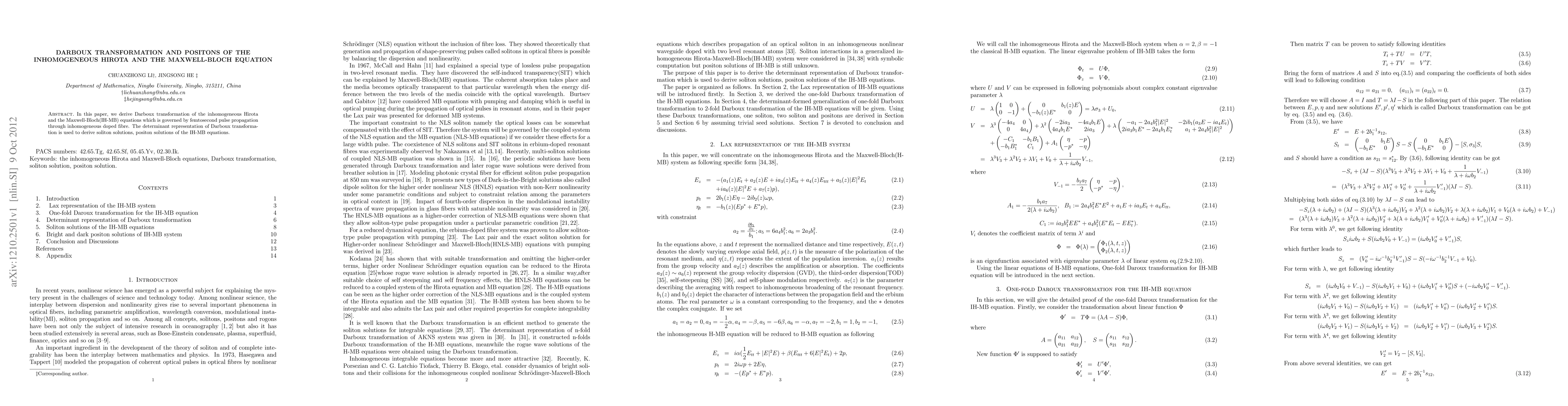 This paper derives Darboux transformation for the inhomogeneous Hirota and Maxwell-Bloch equations, focusing on femtosecond pulse propagation in inhomogeneously doped fiber. It employs determinant representation to find soliton and positon solutions for these equations.