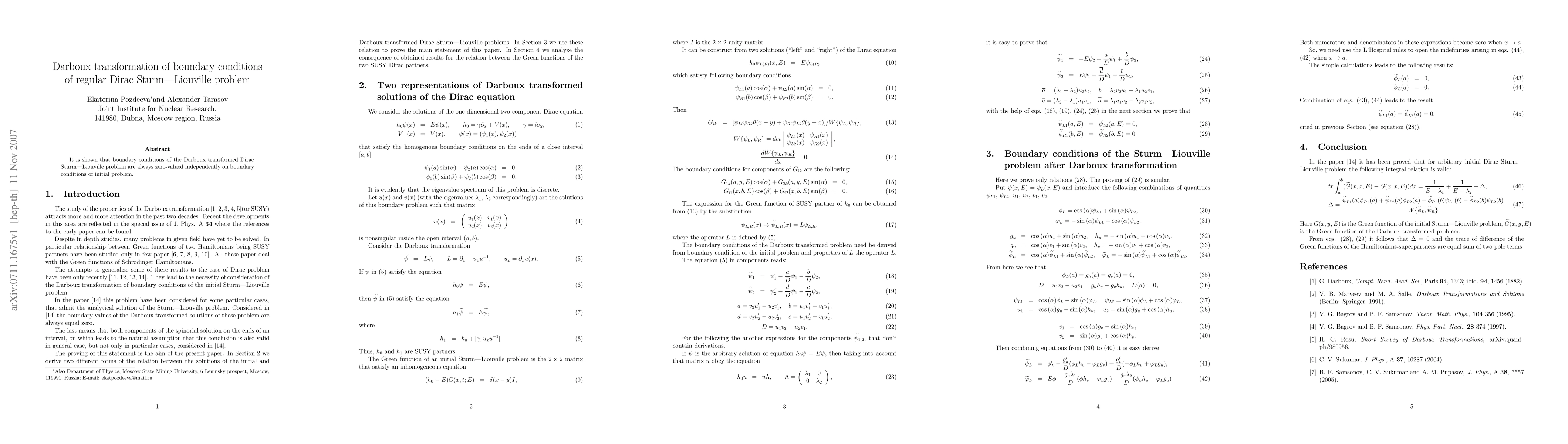 Summary: The paper demonstrates that the boundary conditions for the Darboux transformed Dirac Sturm-Liouville problem are consistently zero, regardless of the initial problem's boundary conditions. This reveals a unique property of the transformation.