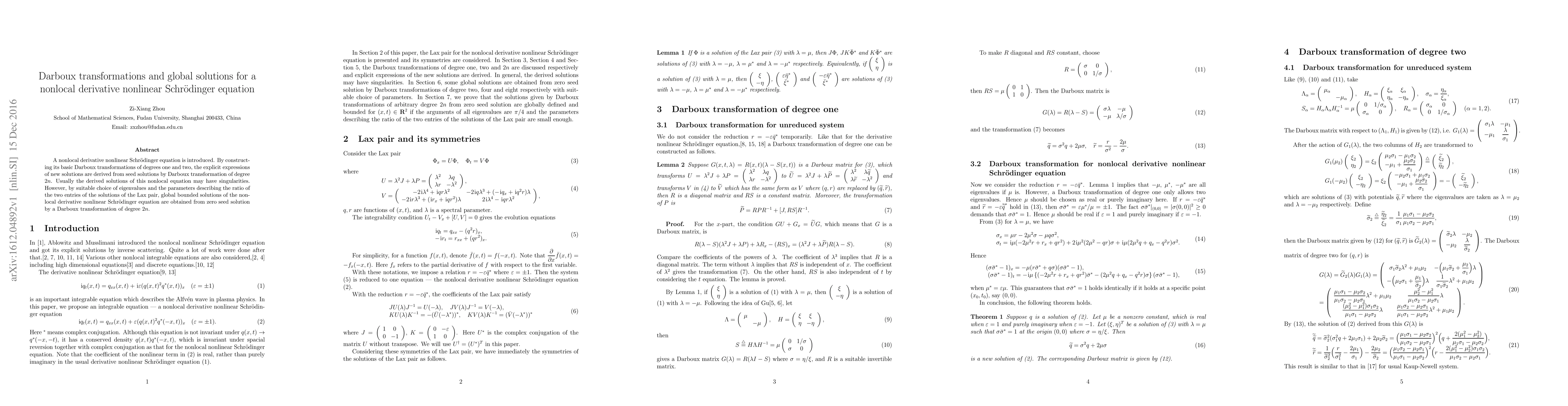 This paper introduces a nonlocal derivative nonlinear Schrödinger equation and derives global bounded solutions through Darboux transformations, transforming the zero seed solution into new solutions by adjusting parameters and eigenvalues to avoid singularities.