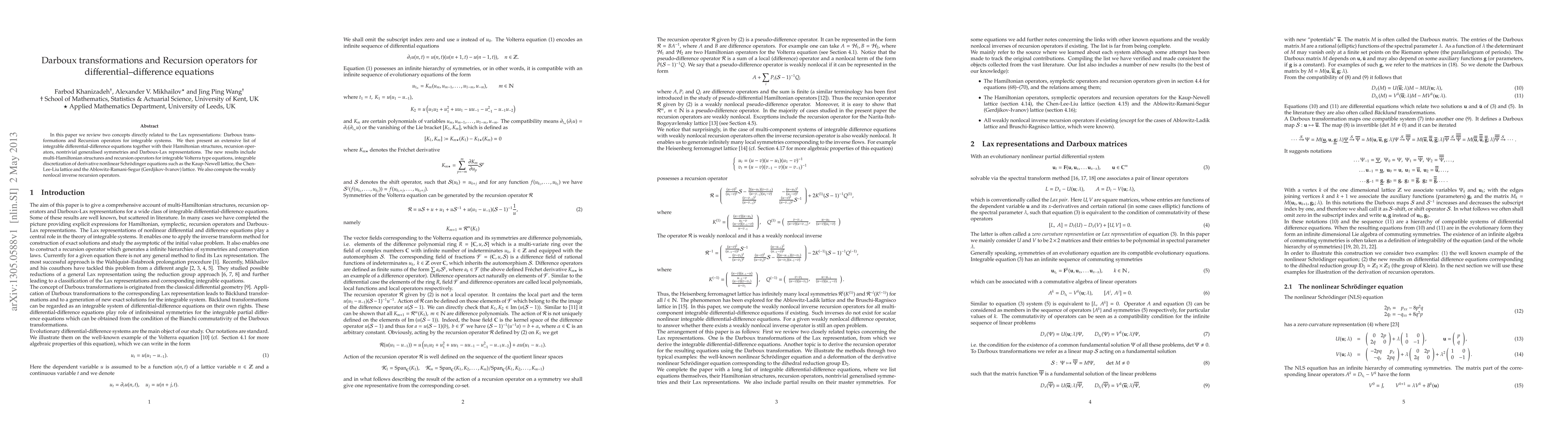 This paper reviews Darboux transformations and recursion operators in the context of integrable systems, focusing on differential-difference equations. It presents new results on multi-Hamiltonian structures and recursion operators for various Volterra type equations and discretized nonlinear Schrödinger equations, including the Kaup-Newell, Chen-Lee-Liu, and Ablowitz-Ramani-Segur lattices.