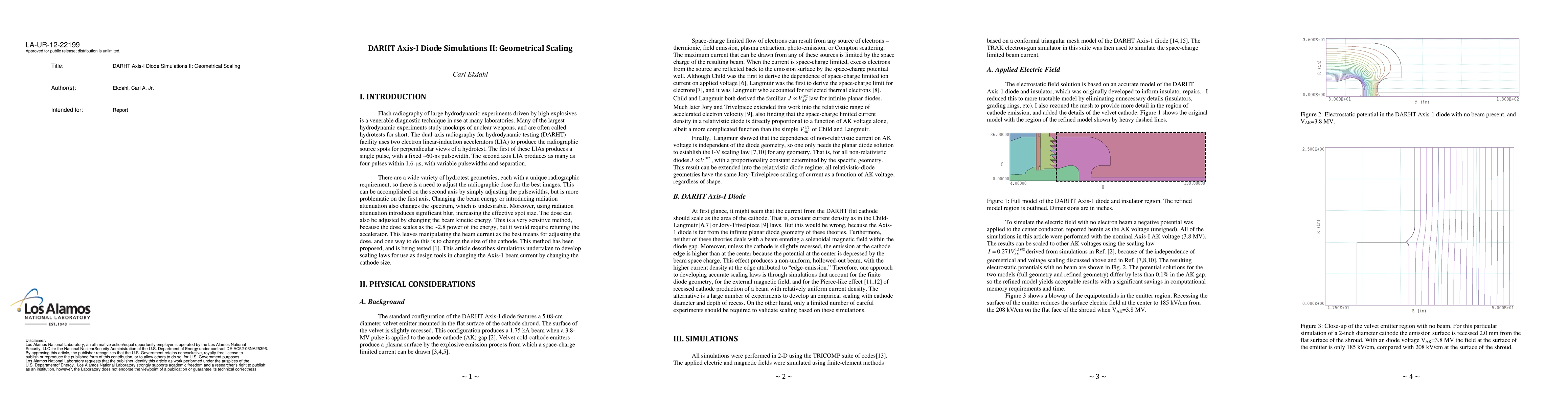 This paper presents simulations for the DARHT Axis-I diode to develop geometric scaling laws for adjusting the Axis-1 beam current by altering the cathode size, aiming to optimize the dose for dynamic experiments. The results provide design tools for scaling the cathode dimensions.