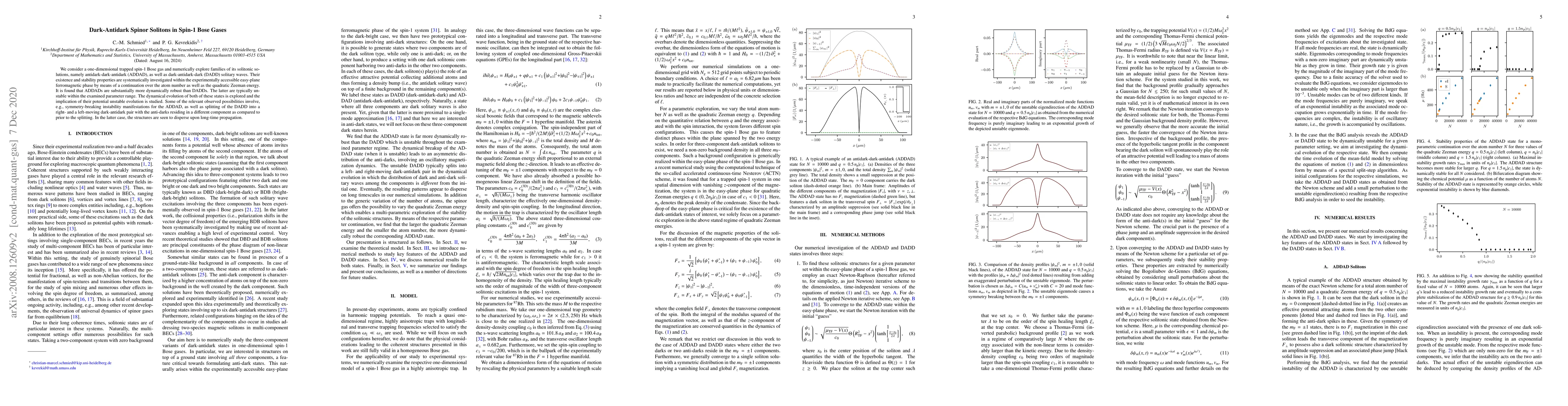 This paper investigates solitonic solutions in a one-dimensional spin-1 Bose gas, focusing on antidark-dark-antidark (ADDAD) and dark-antidark-dark (DADD) solitary waves. It finds that ADDAD solitons are more stable than DADD solitons, which often exhibit instability and can split into separate dark-antidark pairs, dispersing over time.