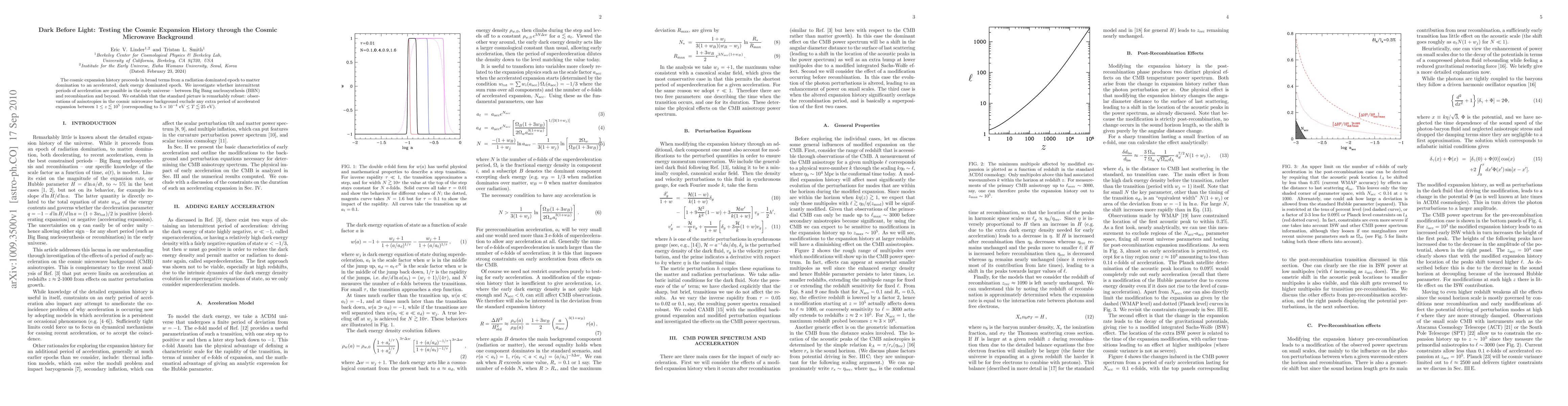 Summary: This study examines the cosmic expansion history through observations of cosmic microwave background anisotropies, finding no evidence for additional periods of accelerated expansion between Big Bang nucleosynthesis and recombination. The standard model of a smooth transition from radiation to matter to dark energy dominance remains robust.