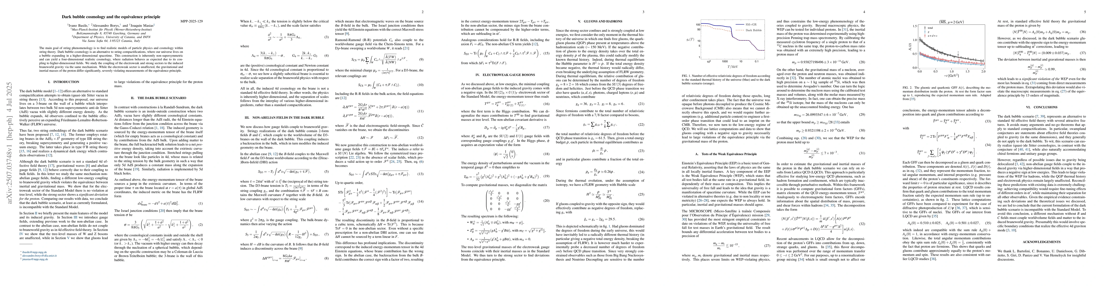 The main goal of string phenomenology is to find realistic models of particle physics and cosmology within string theory. Dark bubble cosmology is an alternative to string compactifications, where our universe lives on a bubble expanding in a higher-dimensional spacetime. This construction is inherently non-supersymmetric and can yield a four-dimensional realistic cosmology, where radiation behaves as expected due to its coupling to higher-dimensional fields. We study the coupling of the electroweak and strong sectors to the induced braneworld gravity via the same mechanism. While the electroweak sector is unaffected, the gravitational and inertial masses of the proton differ significantly, severely violating measurements of the equivalence principle.