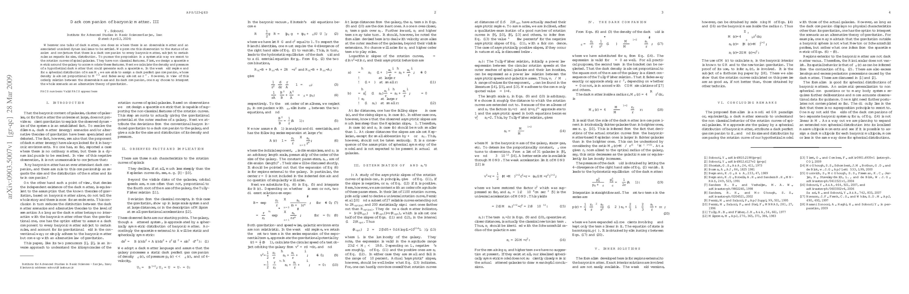 Wherever one talks of dark matter, one does so where there is an observable matter and an associated unsolved dynamical issue to be settled. We promote this observation to the status of an axiom and conjecture that there is a dark companion to every baryonic matter, subject to certain rules as regards its size, distribution. To pursue the proposition in a systematic way we resort to the rotation curves of spiral galaxies. They have non classical features. First, we design a spacetime metric around the galaxy to accommodate these features. Next we calculate the density and pressure of a hypothetical dark matter that could generate such a spacetime. In the weak field regime and for a spherical distribution of mass $M$, we are able to assign a dark perfect gas companion, whose density is almost proportional to $M^{1/2}$ and fades away almost as $r^{-2}$. However, in view of this orderly relation between the observable mass and its dark companion, one may choose to interpret the whole scenario as an alternative theory of gravitation.