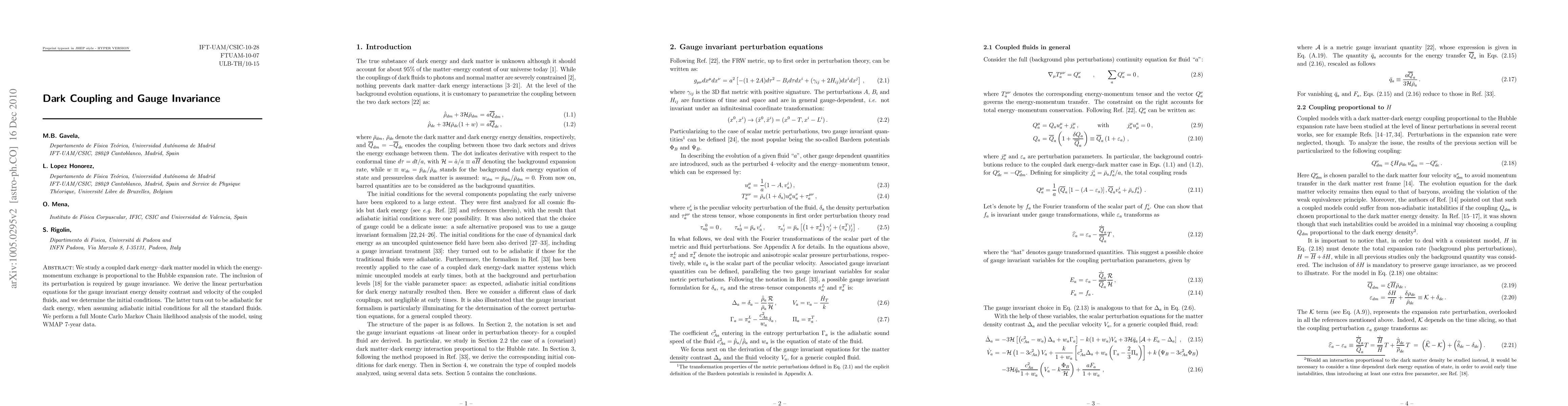 We study a coupled dark energy-dark matter model in which the energy-momentum exchange is proportional to the Hubble expansion rate. The inclusion of its perturbation is required by gauge invariance. We derive the linear perturbation equations for the gauge invariant energy density contrast and velocity of the coupled fluids, and we determine the initial conditions. The latter turn out to be adiabatic for dark energy, when assuming adiabatic initial conditions for all the standard fluids. We perform a full Monte Carlo Markov Chain likelihood analysis of the model, using WMAP 7-year data.