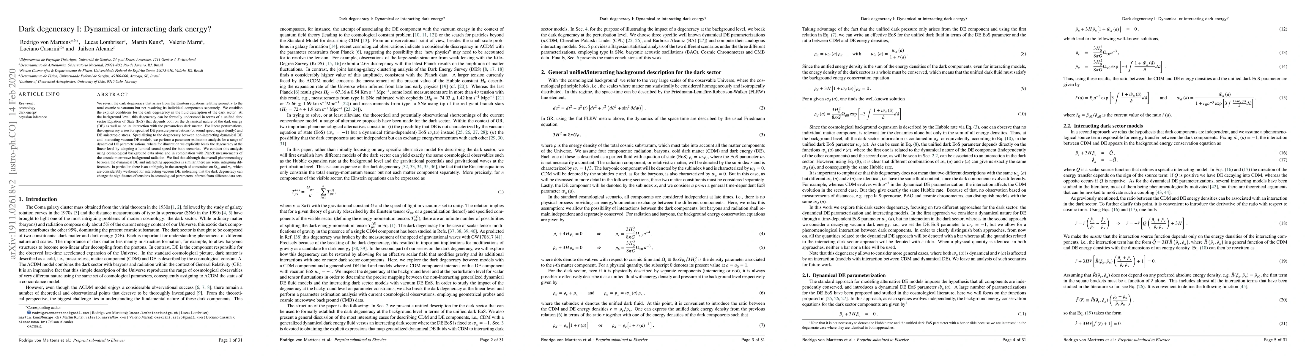 This paper explores the dark degeneracy in the context of dark energy models, showing how it can arise from the unified dark sector Equation of State. It finds that while dynamical and interacting dark energy models exhibit similar phenomenology, they lead to different constraints on cosmological parameters, potentially altering the significance of tensions in current data sets.